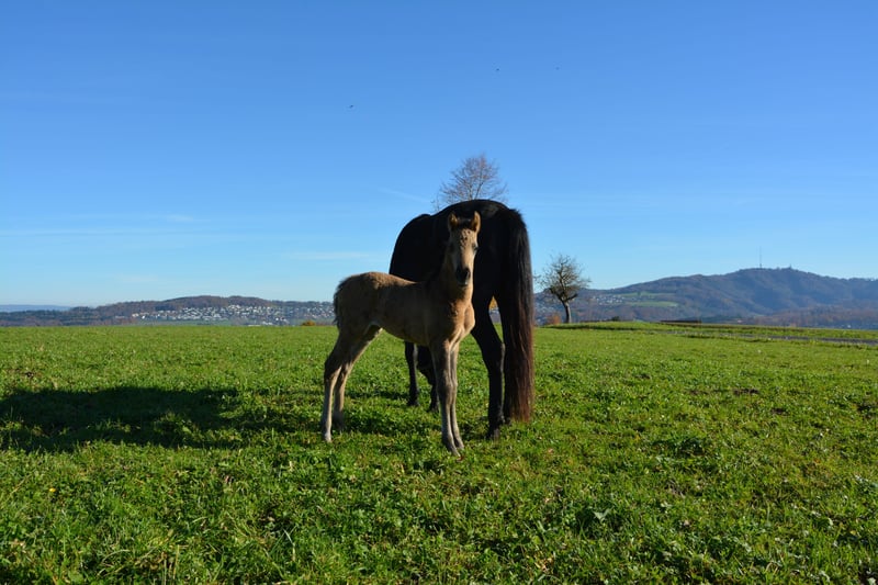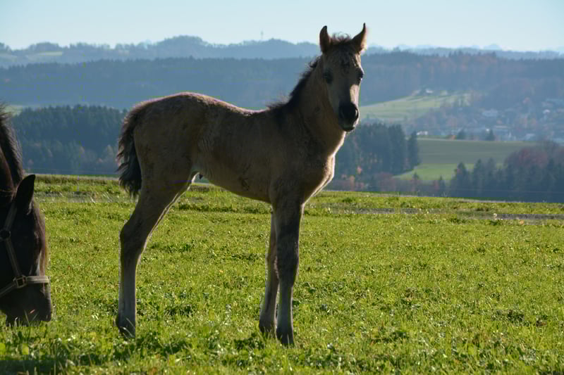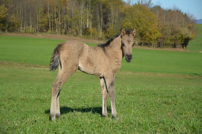 Purebred, exceptionally typey young horse – with heart, movement, and a bright future! We are offering a very special young lady from our Morgan breeding program: Our foal, born on October 27, 2025, is an purebred American Morgan mare, truly a gem – both in character and lineage. The American Morgan Horse is one of the oldest and most noble horse breeds in North America. Known for its versatility, endurance, intelligence, and affinity for humans, the Morgan is considered the quintessential all-round horse – whether under saddle, in the field, driving, or in breeding. Morgan horses are solidly built, elegant movers, with a strong foundation and a clear mind. They are characterized by their balanced temperament, courage, and unwavering loyalty to humans – a breed that captivates both heart and mind. Our young mare is raised 100% purebred within a cohesive herd structure – together with stallions, mares, and foals, which gives her a stable social behavior and healthy self-confidence. She already demonstrates an extraordinary affinity for people, is very trusting, curious, affectionate, and approaches new experiences with calmness and great interest. In the pasture, she shows lively, energetic movement – a real eye-catcher with lots of charisma! Her color is still developing – she is expected to become a buckskin or grullo. • Mother: a beautiful, typey Trakehner mare, very loving, affectionate, eager to learn, and diligent. • Father: a dark grullo stallion, renowned for his intelligence, strength, calm nerves, and closeness to humans – fearless and charismatic, in a way rarely seen. This combination promises a foal with great potential – suitable for leisure, show, and breeding. Our mare will be available from early May 2026 at the earliest. Until then, she will grow up in her herd, with regular visits to build a trusting relationship with her future owner. We only place her in the best hands and in a species-appropriate open stable environment – a family-like, horse-friendly setting is especially important to us. A true heart horse for those seeking something special – intelligent, noble, and full of zest for life. If interested, we look forward to personal inquiries and an opportunity to meet in person!
