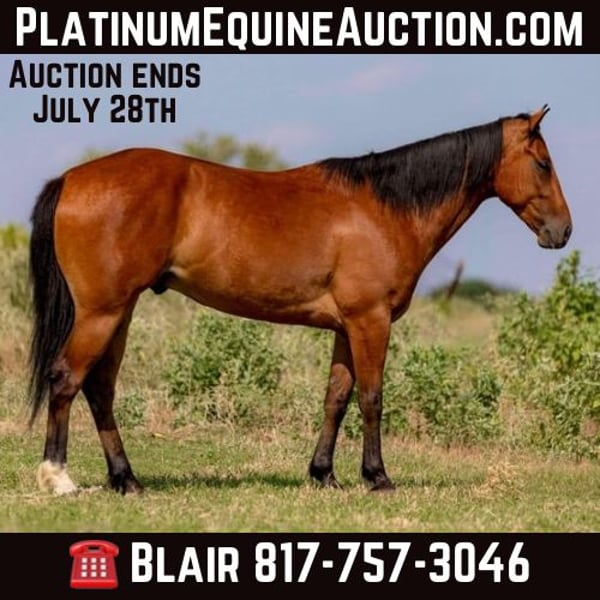 ONLINE AUCTION Place your bids at www.PlatinumEquineAuction.com Starting Bid $3500 Auction ends July 28th, 2024 Need a new saddle? Check out White Rock Saddles on our website or Facebook! “Muchacho” is a 15H, 5 yr old bay gelding. He is one of the sweetest, most willing and kind young geldings we’ve had the pleasure to ride. When you swing a leg over him, you’ll think you’re on a seasoned teenage trail horse that has a million miles. Muchacho is very user friendly and a great handle for a young horse that’s been just a ranch/kids trail and pasture mount. He has been rode by a pile of kids and been exposed to more sights than some older horses. Kids were riding him to town and using him for all the fun things kids can find to do horseback. Muchacho is GENLTE GENTLE GENLTE and will go make someone a nice, no silly business horse. He has a good handle started and could easily go make an arena prospect, ranch prospect, or use solid trail horse tomorrow! He’s not spooky, has zero buck, bolt or bad habits and is a solid, gentle citizen! He neck reins, moves off leg, goes the exact speed you ask and stops right when you tell him to. Muchacho has a great personality and is simply easy to get along with in all aspects! He loads, leads, bathes, ties and gets along with everyone and everything great. He sells UTD on teeth and feet and is ready to go have fun with his new person! Go to his website page northtexashorsecompany.com/muchacho for more pictures and footage! Please call Blair with North Texas Horse Company for more info at 817-757-3046. We are located in Weatherford, TX and can help arrange affordable shipping to anyone!! ONLINE AUCTION Place your bids at www.PlatinumEquineAuction.com Starting Bid $3500 Auction ends July 28th, 2024 Need a new saddle? Check out White Rock Saddles on our website or Facebook!
