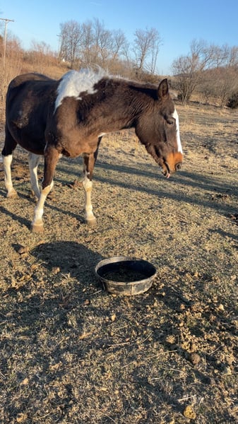She has been haltered once until she got away and never let us catch her after we believe she used to be a breeding mare we got her from and auction accidentally bid on her I’m just not around enough to work with her to get her to a halter break point so if u wanna a project or breeding mare she’s the one for you