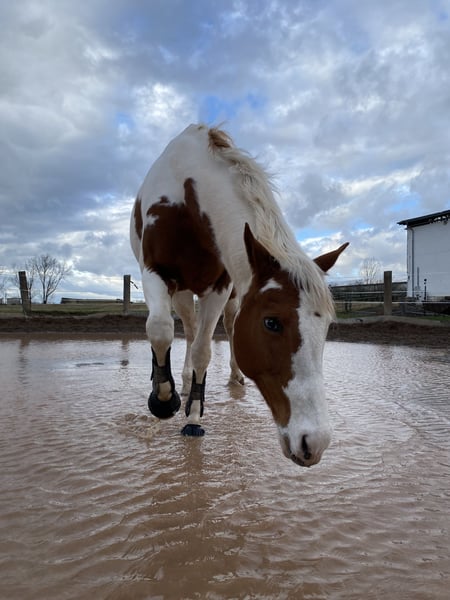 Für meine 12-jährige, 1,56 m große Paint Horse Stute Diamond suche ich schweren Herzens ein passendes und liebevolles Zuhause. Sie wird western geritten, ist arbeitswillig, fein zu reiten und liebt abwechslungsreiche Beschäftigung wie Training im Sattel, Bodenarbeit, Handarbeit, Ausritte oder Freiarbeit. Unter dem Sattel ist sie äußerst fleissig und lernt sehr schnell dazu. Diamond hat APHA-Papiere und ist mit ihrer sorrel tovero Farbe und dem blauen Auge ein echter Hingucker. Kein Anfänger- oder Kinderpferd – Diamond ist charakterstark, sensibel und braucht eine erfahrene Bezugsperson mit Westernreiterfahrung. Mit ihr kann man durch Dick und dünn gehen und sie sollte unbedingt weiter gefördert werden. Im Oktober 2024 wurde bei ihr equines Asthma diagnostiziert, 04.2025-10.2025 war sie zur Kur an der Nordsee – mit großem Erfolg! Sie ist wieder fit, voller Energie, toll bemuskelt und ein bisschen dick vom guten Küstengras; daran arbeiten wir jetzt wieder :-) Sie ist bereit für einen Neustart in einem staubfreien Offenstall (ohne Stroh) mit Heulagefütterung und täglicher Bewegung. Aufgrund des Asthmas wird regelmäßige Bewegung (5-7x pro Woche empfohlen!). Aufgrund heller Haut neigt sie bei starker Sonne zu Sonnenbrand – UV-Decke und UV-Maske sind vorhanden und damit lebt sie entspannt und zufrieden. Sie ist herdenverträglich und kennt gemischte Gruppen. Diamond ist beschlagen, und sie sollte auch beschlagen bleiben. Verkauft wird sie nur mit ihrem maßangepassten Equiflex-Sattel (2020, 2024 überarbeitet) und weiterem Zubehör (Pad, Trense, Halfter, UV-Schutz, Decken, etc.) - alles im Preis inbegriffen! Kein Notverkauf – nur in beste Hände! Platz definitiv vor Preis, auch ein zur Verfügung stellen möglich mit späterer Kaufoption. Ein Kennenlernen und Probereiten ist nach Absprache möglich. Bei einem Käufer aus der Gegend könnte sie auch im aktuellen Zuhause (Heulage, Strohfrei, Offenstall, viel Bewegungsmöglichkeit und tolle Stallgemeinschaft) verbleiben - hier hat sie alles was sie braucht und fühlt sich wohl. **** Ich könnte Bände schreiben zu diesem wundervollen Pferd, welche mein absolutes Traumpony ist. Gerne erzähle ich Dir persönlich mehr und beantworte alle möglichen Fragen.