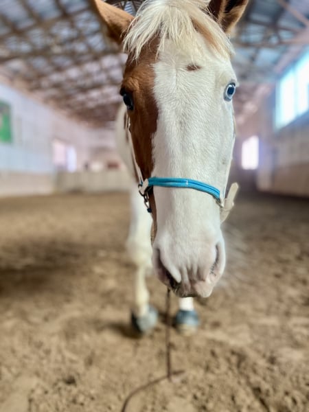 For my 12-year-old, 1.56 m tall Paint Horse mare Diamond, I am reluctantly looking for a suitable and loving home. She is ridden western, is eager to work, sensitive to ride, and loves varied activities such as saddle training, groundwork, handwork, trail rides, or free work. Under saddle, she is extremely diligent and learns very quickly. Diamond has APHA papers and with her sorrel tovero color and blue eye, she is a real eye-catcher. Not a beginner or children's horse – Diamond is strong-willed, sensitive, and needs an experienced handler who can gain her trust, stand by her through thick and thin, and continue to support her training. In October 2024, she was diagnosed with equine asthma. Since April 2025, she has been undergoing treatment at the North Sea – with great success! She is fit again, full of energy, well-muscled, and ready for a fresh start in a dust-free open stable (without straw) with haylage feeding. Apart from the asthma, she is healthy. Due to her light skin, she is prone to sunburn in strong sunlight – a UV blanket and UV mask are available. She is herd-compatible and knows mixed groups. Diamond is shod. She will only be sold with her custom-fitted Equiflex saddle (2020, revised in 2024) and additional equipment (pad, bridle, halter, UV protection, blankets, etc.). This is not an urgent sale – only to the best hands! Current location: 26936 North Sea Coast. A meet-and-greet and (limited) trial ride is possible by arrangement. Unfortunately, there is no riding opportunity at the treatment location (no round pen, arena, or riding area). Pictures of side view from 09.07.2025. Other pictures were taken before the asthma diagnosis. **** I could write volumes about this wonderful horse, which is my absolute dream pony. I would be happy to tell you more personally.