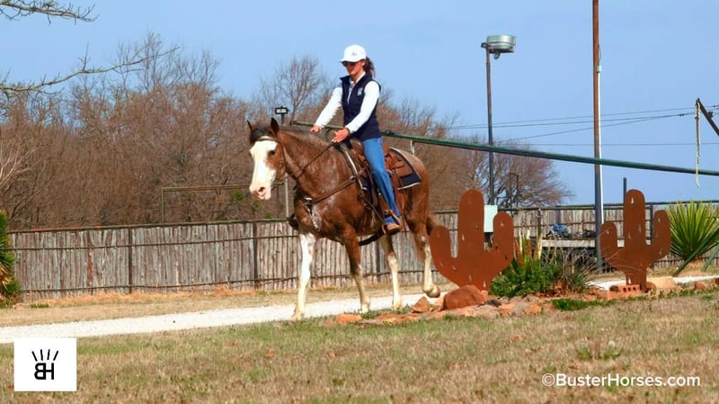 "AVAILABLE ON ONLINE HORSE AUCTION AT www DOT PlatinumEquineAuction DOT com BIDDING OPEN NOW thru SUNDAY | MARCH 1ST! *Final price will be determined on auction site* CONSIGNOR CONTACT INFO: Buster Horses 214-605-7174 LOCATION: Weatherford, TX Maivie is a gorgeous, loud-colored roan mare who’s truly one of a kind. She’s gaited, exceptionally smooth, and practically impossible to fall off of...if you can sit up and hold the reins, you can ride Maivie! She’s incredibly uncomplicated and easygoing, perfect for a new rider or someone who wants a fun, grab-and-go partner. Her previous family only rode her a handful of times a year, and she’s always been the same steady horse every single time. She is a great build and just the right size easy to saddle easy to step on and off of at 14.3 hands! Maivie excels on trail rides and is equally comfortable walking with non-gaited horses or gaiting out naturally when asked. She’ll match whatever pace the group needs. Not only can she gait beautifully, but she’ll lope as well. She’s surefooted, kind, and stands patiently at the mounting block or anywhere you put her. She rides out comfortably and confidently alone and in a group - she has been in a ton of parades and been to town lots and she's extremely comfortable around cars and traffic in town! Truly, she’s a sweetheart who is just easy to get along with in every way - if they were all this easy our job would be so incredibly uncomplicated! You just grab this one, saddle, hop on - and go! Please check out Buster Horses’ social media pages for additional photos and videos that will be posted leading up to sale day, and don’t hesitate to reach out with any questions. Maivie is located in Weatherford, TX – one hour from Dallas / Fort Worth International Airport. He is an easy day trip, or fun overnight trip to come and try out, from anywhere! We are experienced, knowledgeable sellers, and we can help with quickly arranging affordable shipping to any buyer’s location – we have experience shipping worldwide – including regularly to Hawaii, Canada, Mexico, Europe, and South Africa. Call Ashley with Buster Horses 214-605-7174 MORE pictures and videos at: BusterHorses.com Located in Weatherford, TX ~ West of Fort Worth, TX 1 hour from Dallas / Fort Worth International airport …and we can help with quickly arranging affordable shipping to any buyer’s location ~