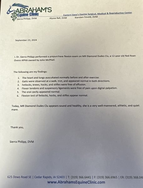 ONLINE AUCTION Place your bids at www.PlatinumEquineAuction.com Starting Bid $3500 Auction ends October 13th, 2024 Need a new saddle? Check out White Rock Saddles on our website or Facebook! Diamond is a stunning 12-year-old registered APHA mare, standing at 14.3 hands tall. She has an eye-catching appearance and an even more impressive resume. Over the years, she has been shown in a variety of disciplines, including youth walk-trot, adult western pleasure, and ranch horse pleasure. In addition, she has won numerous halter classes with children and has been shown in 4-H by multiple young riders. Diamond is a seasoned competitor in open shows as well, and her versatility shines through in her ability to excel in both the show ring and on the trail. She is truly a reliable and gentle mare with no behavioral issues or vices. When it comes to trail riding, Diamond is a dream. She has been on countless camping trips, sometimes lasting all weekend, and never hesitates when encountering obstacles such as water, logs, or ditches. Whether tied to the trailer or out on the trail, she remains calm and well-behaved. Diamond is also parade ready, as she’s carried flags in grand entries without a second thought. Her easygoing temperament makes her a great companion, and she is excellent for routine care such as vaccinations, worming, and farrier work. What truly sets Diamond apart is her impeccable bloodlines and extensive professional training. She responds beautifully to leg cues and has a solid one-hand neck rein, making her a pleasure to ride for all skill levels. In addition to her show and trail experience, she is sound and ready to breed if you’re looking to add quality to your breeding program. Whether you need a family horse, a show partner, or a reliable trail companion, Diamond is the complete package. Don’t miss out on this wonderful mare who can do it all. Located in Lisbon, IA. Contact John McPhail 319-721-7714. ONLINE AUCTION Place your bids at www.PlatinumEquineAuction.com Starting Bid $3500 Auction ends October 13th, 2024 Need a new saddle? Check out White Rock Saddles on our website or Facebook!