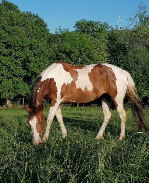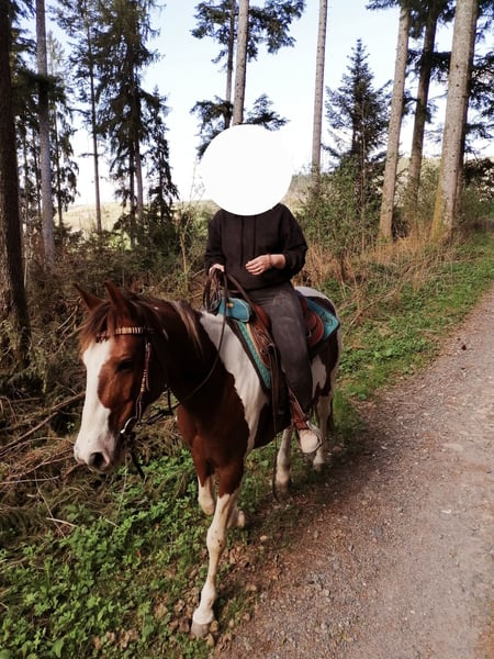Holly – Paint Horse Holly arrived at my place in January 2022. Shortly before, I had lost my soulmate horse, who had suffered a severe leg fracture upon waking from anesthesia and had to be euthanized immediately. As many may know, I wanted to find a new horse right away to have a new task and purpose. In hindsight, this decision was somewhat hasty, as I never fully managed to bond with Holly. When Holly came to me, I learned by chance from a trainer about her difficult past. This initially gave me a new challenge, and I had to rebuild her trust, which I was able to do with time and patience. Last year, I became pregnant and now have a baby, which means I no longer have the opportunity for consistent and regular training with Holly. In my opinion, this is actually best for her. She needs to be challenged and benefits from regular work, especially when it comes to riding. Due to my personal situation, Holly has not been ridden extensively for the past 1.5 years. She enjoys groundwork and free lunging very much and engages actively. We live in the South Black Forest and do not have a paddock directly on the farm or an indoor riding arena, which makes the conditions more challenging. Since Holly has not been ridden recently, a trial ride is not possible. She has a breeding certificate but has not had any foals so far. Overall, I would initially prefer to rehome her as a companion horse or as a "project horse," since she has not been ridden for a longer period. A good placement is more important to me than the price.
