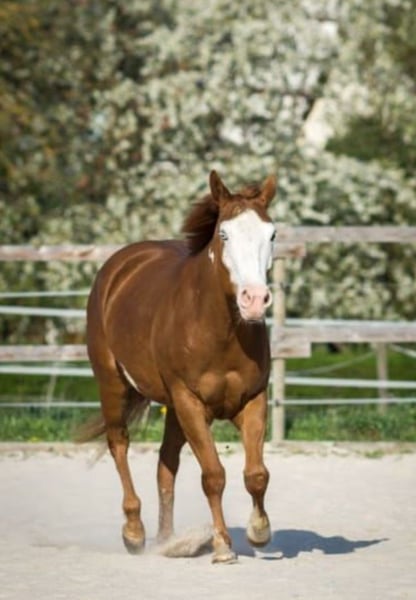 A temperamentally sound and well-behaved mare suitable as a riding companion at Bestplatz. She has a handicap, therefore only suitable as a companion horse. Specific details about the handicap are available upon request. Only kept in an open stable environment. This affectionate mare is especially well-suited as a companion, lead horse, or trail riding partner, including for beginners. She has a very good basic Western riding foundation. Not suitable for indoor riding, clinics, or competitions. First come, first served.