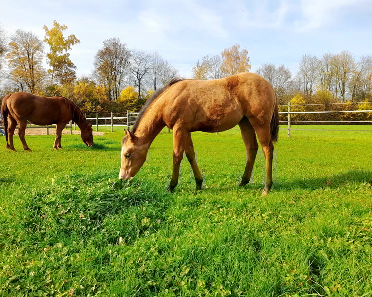 Eine Paint Horse Bukskin Stute mit toller Zeichnung, hervorragends Gebäude und einem besonderem feinem Köpfchen.