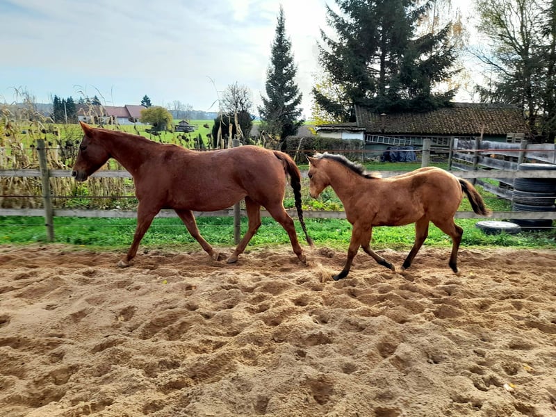 ,Ivy, kennt das tägliche Handling und ist dennoch eine vorsichtige und zurückhaltende Stute mit dem nötigen Respekt. Im Umgang mit Hunden,Traktoren, Kindern und alles was den Alltag betrifft zeigt sie sich interessiert und gelassen. Am Halfter zeigt sie sich fein und gelehrig. Auf bedarfsgerechte Fütterung und Mineralisierung von Stute und Fohlen legen wir großen Wert, wie auch die Vorstellung beim Hufschmied und der wichtigen regelmäßigen Entwurmungen.