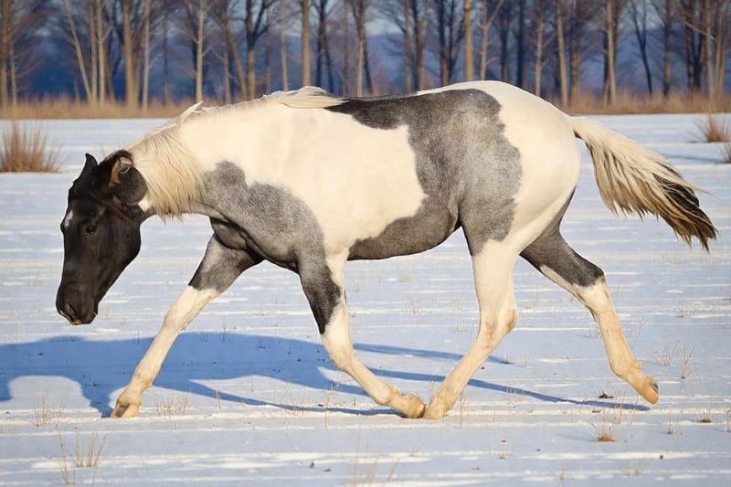 Ranch 3R – Spring (2 years old) Ranch 3R offers for sale in spring a two-year-old American Paint Horse mare: TR JOALLINE ILLUSION color light blue roan / tobiano, top reining bloodlines. Pedigree: ▪ Sire: Sparklin Tide Greggo – grullo/tobiano TT, APHA Grand Champion ▪ Dam: Magic Poco Lena Beau (AQH) ▪ Granddaughter of the multi-champion stallion Black Magic 497 (AQH) ➡️ Both parents can be seen at our ranch. Description: A stunning, elegant mare with a beautiful refined head, compact build, and strong, straight legs. Spacious, fluid movement and an exceptionally kind, communicative temperament – a true cuddle horse. Completely healthy, no injuries. Suitable for: ✔ Breeding ✔ Shows ✔ Sport ✔ Leisure riding ✔ Family horse for a soft, sensitive rider Health & Documentation: ▪ regularly trimmed ▪ dewormed ▪ complete vaccination program ▪ APHA certificate ▪ 7-panel genetic test ▪ passport available Training: Joalline has basic groundwork training, is unspoiled, trainable, willing to learn, and cooperative. A perfect opportunity to develop a horse from a solid foundation according to your own vision. Sales Conditions: Sold only to excellent, carefully vetted homes, ideally with the company of other horses. There is also the option for her to remain at our ranch together with her peers. About Us: Ranch 3R has a long-standing breeding tradition and excellent references from owners of our offspring throughout Europe. We provide lifetime advisory support to new owners, including assistance with American and Czech re-registration. Our ranch is also the birthplace and home of 🏆 The Most Beautiful Horse of the Czech Republic 2016 – Jackie Bueno Cherokee (APH). 📌 More information: www.ranch3r.cz E.: ranch3r@seznam.cz