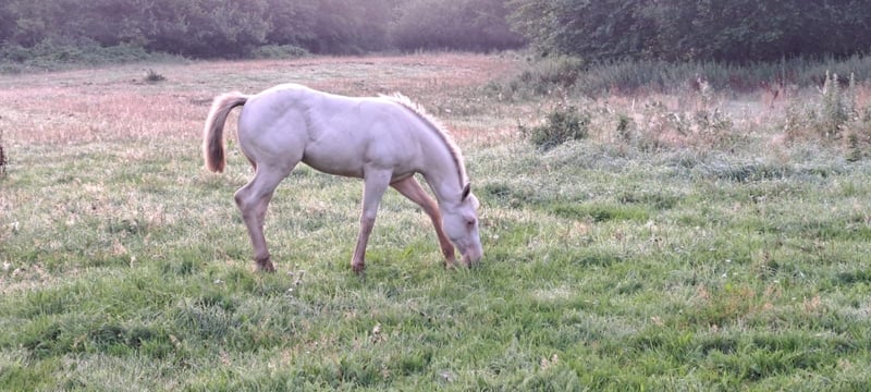 …en ik zoek mijn toekomstige favoriete persoon! Ik ben geboren op 22-04-2025 en verken sinds die tijd de wereld altijd open en nieuwsgierig. Mijn kleur is smokey cream en ik ben geregistreerd bij de APHA en het PHCG. Ik ben zeer vriendelijk, mensgericht, halsterführig en geduldig bij de smid. Het rijden met de trailer is voor mij geen probleem. Natuurlijk ben ik gechipt, gevaccineerd en ontwormd. Op de keuring in Bremen/Ritterhude ben ik met een score van 8,15 uitgeroepen tot veulenkampioen. Hiermee heb ik me gekwalificeerd voor het nationale veulenkampioenschap in Darmstadt, waar ik 7e ben geworden. Wil je me graag leren kennen? Neem snel contact op met mijn eigenaar Frank Heldt via 0176-34507184.