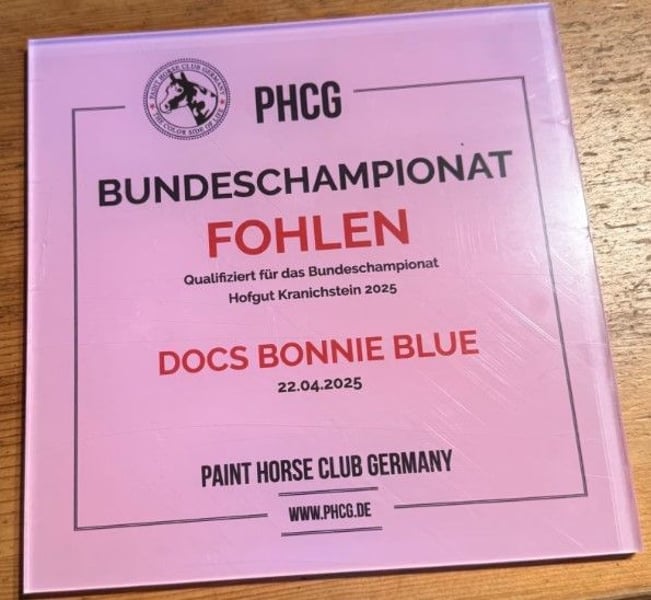 Auf diesem Weg sucht sie ihren neuen Herzensmenschen ❤️ Ein wunderschönes Stutfohlen in besonderer Farbgebung Smokey Cream aus unserer Paint Stute GB Black Jacks Dream, Bundeszuchtstute. Sie wurde Siegerfohlen in Ritterhude mit einer Gesamtnote von 8,15 . Teilnahme auf der Bundeszuchtschau in Darmstadt , Hofgut Kranichstein . Bonnie ist bereit, einen neuen Lebensabschnitt anzutreten. Sie ist liebenswürdig, sehr umgänglich, kennt das tägliche Handling, leichtführig am Halfter. Sie ist super brav beim Schmied, da sie artig steht und nicht kitzelig an den Beinen ist. Aufgeschlossen und neugierig erkundet sie die Welt und ist dabei sehr unerschrocken. Geht brav auf den Anhänger. Panel Test sowie DNA Profil liegen bereits vor. Gechippt, geimpft und entwurmt ist sie natürlich auch. Equidenpass vom PHCG sowie die Papiere von der APHA sind bereits vorhanden. Sie könnte dein zukünftiges Pferd werden. Melde dich einfach, um sie kennen zu lernen. Wir freuen uns . Standort : 23626 Ratekau Züchter und Besitzer: Frank Heldt : 0176/34507184