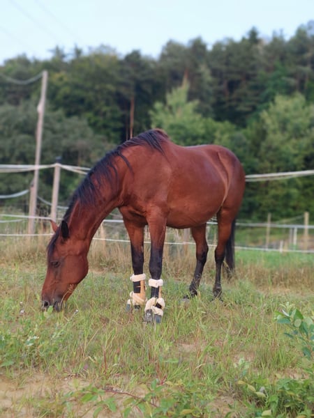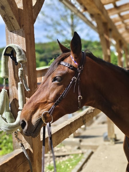 With a heavy heart, I want to sell my first horse. I bought Daphne a little over a year ago. Originally, I was told she was a great schoolmaster and perfect for beginners. Unfortunately, this has not proven to be the case. She was sold to me as fully rideable, which is also not accurate. Due to a damaged back, she is no longer suitable for riding. She will only be sold to a good home. Stallion-friendly, open stable management only. Not compatible with other mares. Despite her age, she still enjoys being moved and entertained, so groundwork and handling are still possible. She is a bit independent and definitely not suitable for beginners. Additionally, she is quite often in heat and exhibits some stallion-like behavior. Under no circumstances is she rideable. If desired, she can be sold with accessories such as various halters, lead ropes, lunging girth, boots, and bandages. I wish for Daphne (as we affectionately call her) to find a lovely final home in an open stable with a gelding, possibly on a mountain pasture. Price is negotiable and the well-being of the horse comes first.