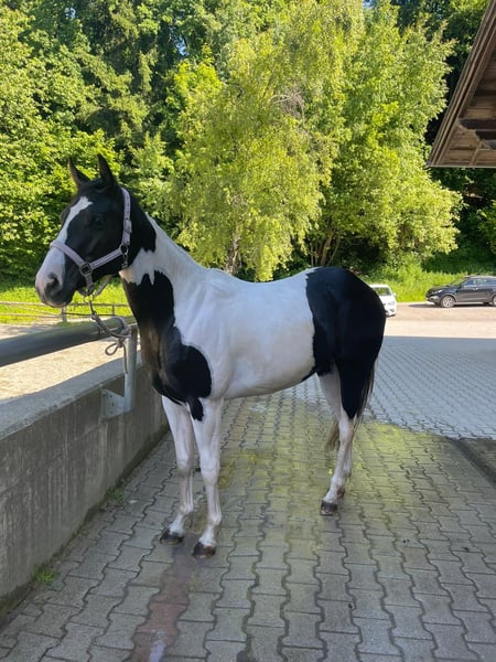 Born: January 2023 Height: approximately 15.2–15.3 hh Pedigree Sire: Passionate King Cody PH Dam: AS Cherokee Rose PH ✨ Our beautiful Paint Horse mare, AS Passionate Ellie, impresses with her expressive type, harmonious temperament, and stunning black tobiano markings. A premium foal with a score of 7.8, she offers excellent prospects for sport, leisure, or breeding. ✨ - Ellie is consistently friendly, calm, and human-oriented - Curious, open-minded, and eager to learn - Enjoys work and learns quickly - Loading and traveling in the trailer are no problem for her - Knows and loves children and dogs - We regularly do groundwork and lunging - Is familiar with rider weight; my children can sit on her without a saddle – she handles everything effortlessly Raised in an open stable but also familiar with paddock boxes Regularly dewormed, vaccinated, and introduced to the farrier She will be professionally backed in January (price increases with training) Ellie would also be well-suited for breeding.