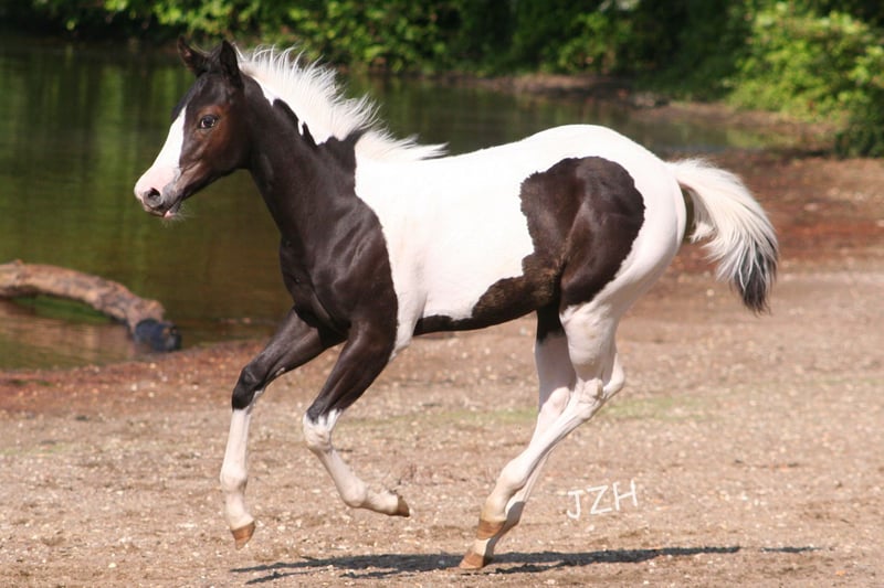 Correct gebouwd Paint Horse merrieveulen. Gelijkmatig getekend met 2 donkere ogen. Nieuwsgierig en helder. Groeit op met meer veulens. Homozygote Tobiano. Mogelijk ook homozygoot voor zwart. 5 Panel Test Met Amerikaanse papieren en PHCG paspoort. Ouders kunnen worden bezocht. Beide worden gekenmerkt door uitstekende rijpaardeigenschappen. Vragen kunnen alleen telefonisch. 01757217229
