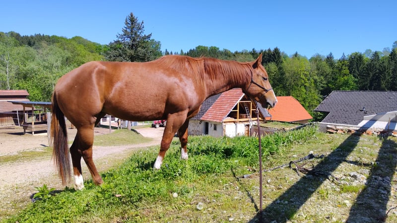 For sale is a lovely, large-framed American Paint Horse mare, born on April 27, 2022, in chestnut with American registration papers. Foxy has been groundwork trained using Natural Horsemanship methods and is already well-prepared for further training. She is accustomed to saddle, bridle, and rider’s weight but has not yet been ridden. Foxy is familiar with ground work and demonstrates a willing and attentive attitude. She is also trailer-safe and travels calmly in a horsebox. She has attended several weekend courses and is comfortable both in a paddock and in a box. Foxy is naturally calm when being shod and is regularly shod. Due to her age and training level, she is not suitable for beginners or children. She is looking for an experienced handler who can continue her education and development. The mare is being sold due to lack of time!