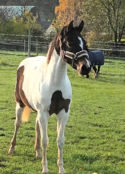 Hier ist die niederländische Übersetzung des Inserats: --- Hier bied ik mijn geweldige 3,5-jarige Paintmerrie te koop aan. Ze is geboren in 2022, ongeveer 1,55 m groot en is bij ons gekomen als veulenkalf. Ze heeft een uitstekende werkhouding, goede voorwaartse energie en beweegt zich zeker in alle drie de basisgangen. Ze loopt zowel solo als in een groepje in het terrein. Ze is gewend om zonder bit gereden te worden, maar kan ook met bit bereden worden. Ze is trailer- en halmogen en kent ook het rijden in vreemde hallen. Een geweldig paard dat, met verdere opleiding, zeker ook op concours een goede indruk zal maken. Ze heeft geen papier, alleen een FN-paspoort. Haar vader is de bekende Quarterhengst Give Me A Shot. Ze wordt regelmatig ontwormd en wordt door de hoefsmid verzorgd. Beschikbare DNA-testresultaten: 6-panel test, GBED/N, de rest N/N. Meer informatie via 017623287698, ook graag per WhatsApp.