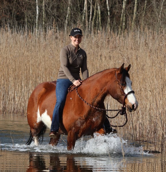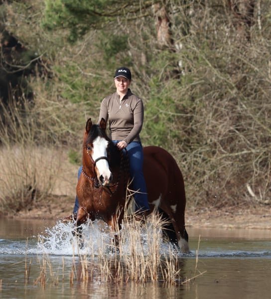 Lee is een echte schoonheid – een jonge, liefdevolle merrie met een bijzonder karakter dat je vanaf het eerste moment betovert. Met haar stokmaat van ongeveer 1,55 m heeft ze een aangename grootte en brengt ze zowel qua uitstraling als karakter alles mee wat je van een hartendier verwacht. Ze is niet alleen een echte eye-catcher, maar is ondanks haar jonge leeftijd al betrouwbaar in alle drie de basisgangen bij ons te rijden. Lee toont zich daarbij altijd gemotiveerd, gevoelig en attent. Als toekomstige vrijetijdspartner is ze ideaal voor ruiters die op zoek zijn naar een vertrouwensvolle en veelzijdige metgezel – of het nu gaat om westernrijden, working equitation of ontspannen buitenritten door bos en veld. Lee is talentvol en maakt gewoon plezier – een paard waarmee je samen kunt groeien en mooie momenten kunt beleven. Wat Lee echter bijzonder maakt, is haar enorme leergierigheid. Ze is een echte “voorbeeldleerling” – nieuwsgierig, attent en altijd open voor nieuwe dingen. Vooral in vrijheidsdressuur en zirkelwerk toont ze zich zeer gevoelig en probeert ze alles goed te doen. Haar oprechte, mensgerichte aard maakt haar tot een geweldige partner, met wie de arbeid nooit saai wordt. Lee is een echte allrounder en staat open voor elke uitdaging. Ze houdt er vooral van om in de natuur te zijn. Of het nu aan een meer is of tijdens uitgebreide bosritten – tot nu toe toont ze zich altijd ontspannen en tevreden. Of ze nu alleen of in een groep rijdt: met Lee wordt elke rit een mooie ervaring. Haar zachte, comfortabele basisgangen maken het rijden bijzonder aangenaam, ze zit heerlijk. Ook in het dagelijks leven overtuigt ze met haar attente en toch evenwichtige persoonlijkheid. Lawaai, spelende kinderen of passerende auto’s maken haar tot nu toe nauwelijks iets uit – ze blijft kalm en beheerst. Haar liefdevolle omgang met mensen en haar opmerkelijke lichte gang maken haar tot een ware schat. Lee is meer dan slechts een paard – ze is een trouwe vriendin die elke dag weer enthousiasmeert. Voor haar zoeken we alleen de allerbeste mensen, bij wie ze zich verder kan ontwikkelen, vertrouwen kan krijgen en zich positief kan blijven ontwikkelen. Als je een hart hebt voor bijzondere paarden en samen met Lee vele avonturen wilt beleven, dan zou zij wel eens de perfecte partner voor jou kunnen zijn. We willen haar een thuis bieden waar ze zich helemaal op haar gemak voelt en de liefde en aandacht krijgt die ze kent. Daarom wordt ze alleen afgestaan aan goede handen. In overleg brengen we haar graag persoonlijk naar haar nieuwe stal, tegen een kilometervergoeding. Een AKU kan uiteraard op verzoek worden uitgevoerd. Je vindt ons in 26899 Rhede. Het exacte adres delen we graag na een persoonlijk gesprek. Telefonisch zijn we bereikbaar onder 0162 4348386. Voor kennismaking en proefritten nemen we bewust de tijd, zodat alles rustig en zonder druk kan gebeuren. Om er zeker van te zijn dat alleen serieuze geïnteresseerden contact opnemen en het geen “weekenduitje” wordt, vragen we een inspanningsvergoeding van €50, die volledig wordt verrekend bij de aankoop. Hartelijk dank voor je begrip. 💛