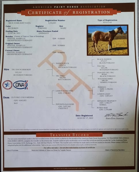 Beautiful 4-year-old Paint mare in the stunning Buckskin Tabiano color! Sire: True Doc Cherokee Unbroken, ideal for self-education! Ground work already started!