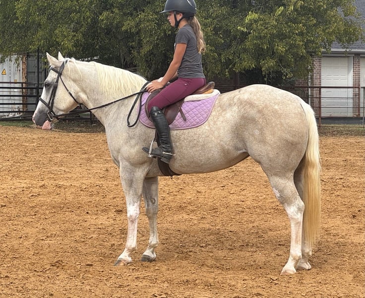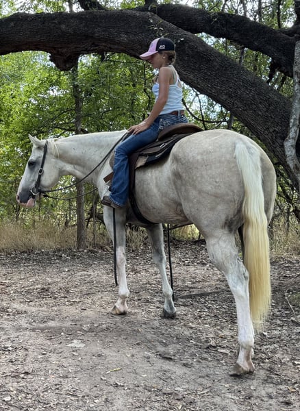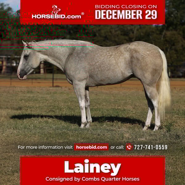 ⚜️𝐓𝐇𝐄 𝓗𝓮𝓻𝓲𝓽𝓪𝓰𝓮 𝐖𝐢𝐧𝐭𝐞𝐫 𝓒𝓵𝓪𝓼𝓼𝓲𝓬⚜️ Happening now thru MONDAY | DECEMBER 29th - Available EXCLUSIVELY on HorseBid's website! For more details and to register visit: www.Horsebid.com CONSIGNOR CONTACT: Combs Quarter Horses 727-741-0559 LOCATION: Cleburne, TX BREED: APHA REGISTERED: Yes REGISTERED NAME: Dar Pale Nu Freckles Aka Lainey COLOR: Palomino overo HEIGHT: 15.1 AGE: 5 GENDER: Mare One of a kind, kid tested, mother approved APHA palomino paint mare! Dar Pale Nu Freckles (Ima Pale Face Cash x Dar FrecklesLaceyLynx) “Lainey” is a beautiful 5yr old 15.1h dappled palomino overo (sabino) mare with full APHA papers! Lainey is by the NRCHA money earning stallion Ima Pale Face Cash who is by the one and only 5 million dollar sire Pale Face Dunnit! Lainey is out of the APHA open point earning mare Dar FrecklesLaceyLynx who is by NRHA money earning stallion Doc Freckles! This young mare was no accident! She was bred and raised the right way! DISPOSITION: Lainey is a very loving, very kind, in your pocket kind of mare. She loves people and will stand for hours just to be brushed and loved on! This girl has a very “old soul” way about her and she’s one of the very few that have that “children’s horse” potential! She is currently being ridden by a youth and she has been ridden by smaller, less experienced children. She was absolutely flawless! Lainey is a little more whoa than go but very respectful and responsive to her riders cues. WESTERN EXPERIENCE: Lainey was started the right way! She has the handle of a Reiner without the speed. She knows all the leg, hand and seat cues but she is not overly sensitive to anything. She moves very well off of your leg with or without spurs. Lainey has all the training to walk right into a ranch riding or ranch trail class and be very competitive. You couldn’t ask for a better trail horse either! She will ride anywhere in the pack. She doesn’t get upset or excited even when the other horses leave her behind or run up behind her. Something that is very hard to come by. With her comfy jog and her very comfy short lope you will love taking this young lady out on those long trail rides! She’s not spooky or reactive to things you see on the trails or in the woods. Not bothered by traffic or wildlife either. Not even my rowdy dogs or terrorizing goat bother this sweet girl! ENGLISH EXPERIENCE: Lainey has such a cute little English trot and canter. She’s got a nice floaty way of going and she will pop right over the little jumps! UPKEEP: Lainey is currently eating a scoop of basic pellets twice a day and free choice alfalfa hay. No supplements or maintenance required to keep her sound. UTD on everything and wearing front shoes as a personal preference. We do have her in an aluminum wedges to enhance her beautiful flat kneed movement. Lainey has previously been barefoot without any issues at all. TURNOUT: Lainey is extremely laid back and easy going in the pasture. She can go out alone or in a group. You can turn her out with anything from the ponies to the drafts. GROUND MANNERS: Lainey has great ground manners. Respectful of your space and easily lead by adults or children. She’s great to saddle and bridle. Stands tied and crosstied. Loves bath time and grooming time. BAD HABITS/ VICES: Lainey has no bad habits or vices. No buck, rear, bolt, bite or kick. TACK: Lainey rides bareback, English or western. She will ride in anything from a halter and lead rope to a snaffle or twisted wire snaffle. She’s not a picky girl! Feel free to reach out with any additional questions at 727-741-0559 For references feel free to visit my personal group “Horses Amber Gourdon”