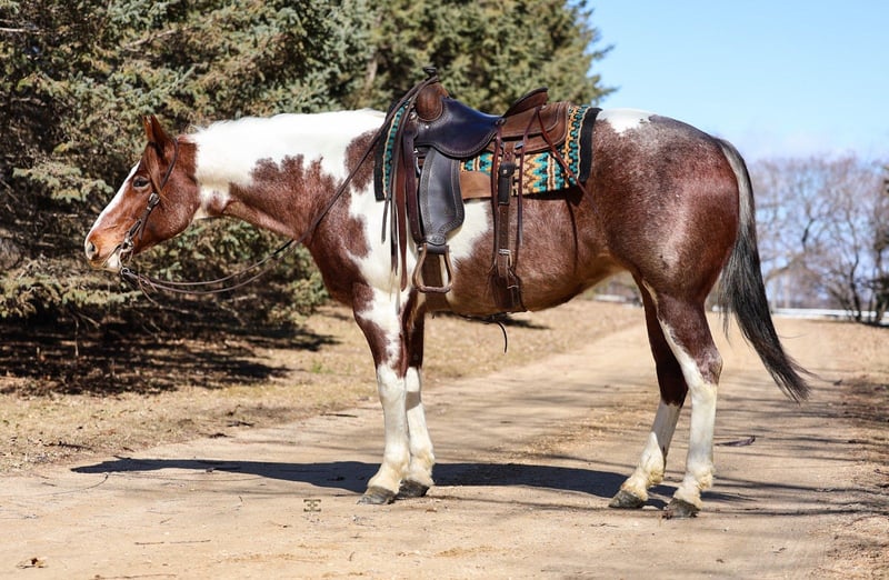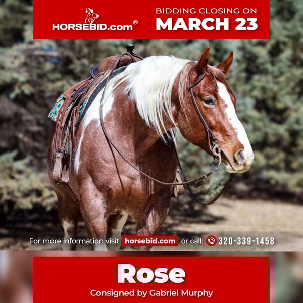 ⚜️𝓽𝓱𝓮 𝐆𝐎𝐋𝐃 𝓢𝓮𝓵𝓮𝓬𝓽⚜️ Happening now thru MONDAY | MARCH 23rd - Available EXCLUSIVELY on HorseBid's website! For more details and to register visit: www.Horsebid.com CONSIGNOR CONTACT: Gabriel Murphy 320-339-1458 LOCATION: Cannon Falls, MN BREED: APHA REGISTERED: Yes REGISTERED NAME: ME BE GOOD COLOR: Red roan TOBIANO/OVERO HEIGHT: 15.3 AGE: 6 GENDER: Mare Rose is a beautiful 2018 model, 15.3 hand APHA mare that truly is versatile. With her stocky build, kind eye, and willing attitude, Rose is the kind of mare that can fit into just about any program. She’s the perfect partner for long trail rides, confidently covering miles of country whether you’re riding through the woods, across open fields, or simply enjoying a quiet day in the saddle. Rose has also been used to check fences and handle everyday ranch tasks, proving she’s a dependable and practical horse to have around. Rose walks, trots, and canters nicely, neck reins, and has an easy, comfortable way of going. She rides around quiet and willing and is enjoyable for riders of many levels. On the ground, Rose is just as pleasant to be around. She is gentle, easy to handle, and not mareish at all, making her a pleasure in the barn or at the trailer. She stands tied quietly to be bathed, brushed, tacked up, and mounted without any fuss. Rose has gathered and pushed cattle and has the kind of solid foundation that allows her to go in many directions. Whether you’d like to continue using her for ranch work, enjoy her on the trails, or finish her your way in a western or English program, Rose is a versatile mare with a great mind and an even better attitude. 🐎