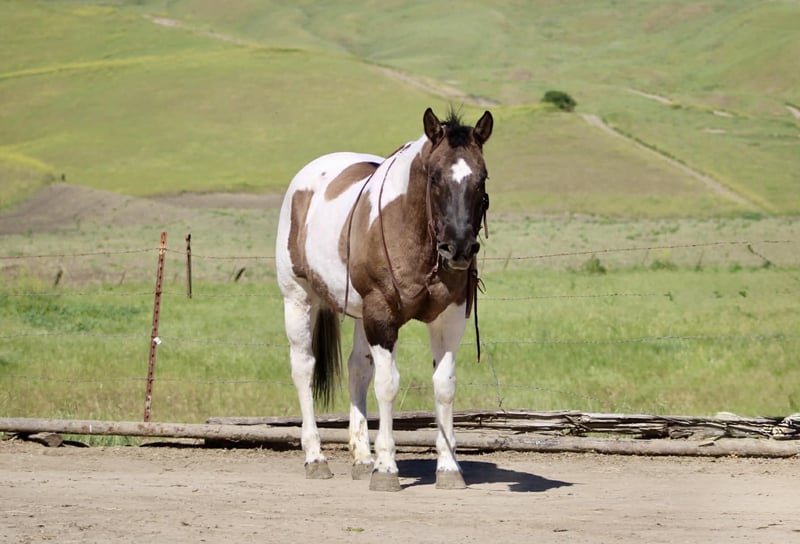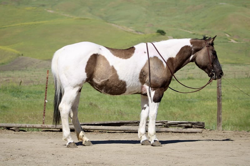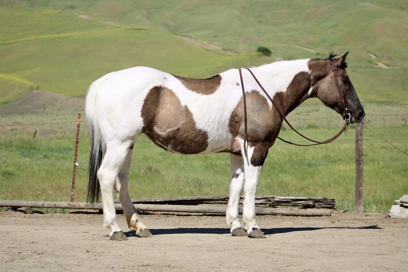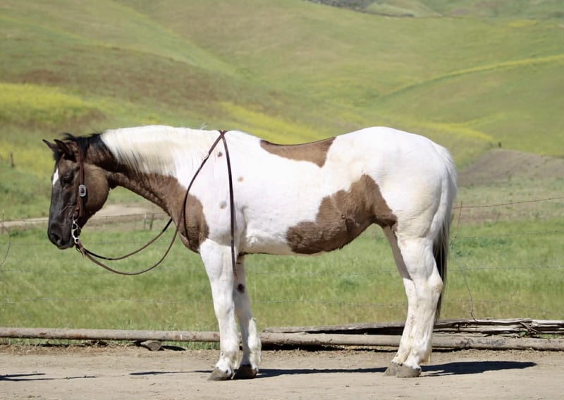 "AVAILABLE ON ONLINE HORSE AUCTION AT www DOT PlatinumEquineAuction DOT com BIDDING OPEN NOW thru SUNDAY | APRIL 12TH! *Final price will be determined on auction site* CONSIGNOR CONTACT INFO: Cheyenne Rey 831-537-8746 LOCATION: Bitterwater, CA Sage is a 7-year-old, 15HH grulla and white Paint mare, built as thick and wide as she is tall. She has a friendly personality and a very steady mind. She has been raised in the Pacific Northwest her entire life, making her extremely sure-footed and confident on all kinds of terrain. Sage has plenty of trail experience and is happy to ride out alone or in a group, traveling along at a relaxed, easy pace. She has been exposed to overnight camping, water crossings, bridges, wildlife, and all types of farm animals including dogs, chickens, and cows, and she handles new situations with a calm, willing attitude. She is not finished in a specific discipline but has a solid foundation in both the arena and on the trail. In the arena, Sage knows her leads, has a nice stop and reverse, and is very easy to guide. On the trail, she stays on track, watches her footing, and doesn’t get bothered by new environments. She does well with time off and does not come back fresh or silly, which makes her an easy, low-maintenance partner. Sage has great ground manners—she stands tied quietly, is easy to groom and tack up, picks up all four feet without fuss, and loads and hauls in the trailer with no problems. She is a safe, sensible mare with a sweet demeanor who wants to be your friend and would make a dependable trail partner or a great all-around horse for someone looking to continue her training in any direction. She is located in Bitterwater, CA. For more information please contact Cheyenne at 831-537-8746