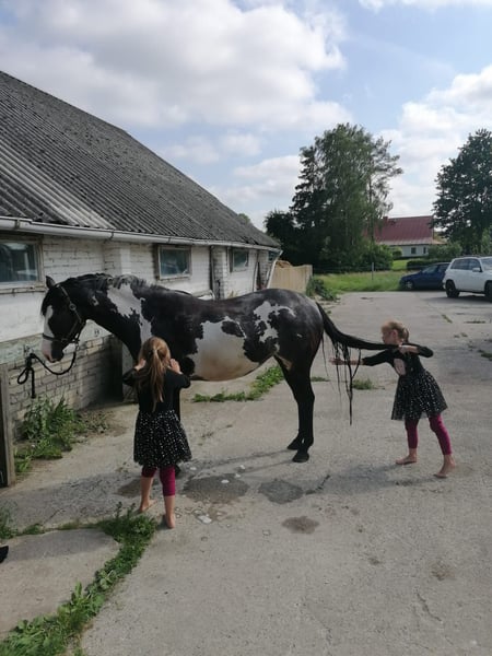 For sale is a Black Overo mare that is not only attractive but also stands out due to her clear and friendly personality. Pocahontas is a horse suitable for the whole family. Whether enjoying a leisurely ride to relax, working diligently in the arena (Western, dressage, jumping), or exploring nature together by carriage, she always aims to please. We primarily rode her English-style. She is also familiar with the farrier and trailer loading, which pose no issues. In handling, she is very affectionate and straightforward. A carriage with all accessories and a Western saddle can be purchased separately for an additional fee. !!! Please contact only by phone at 015251505440 !!!