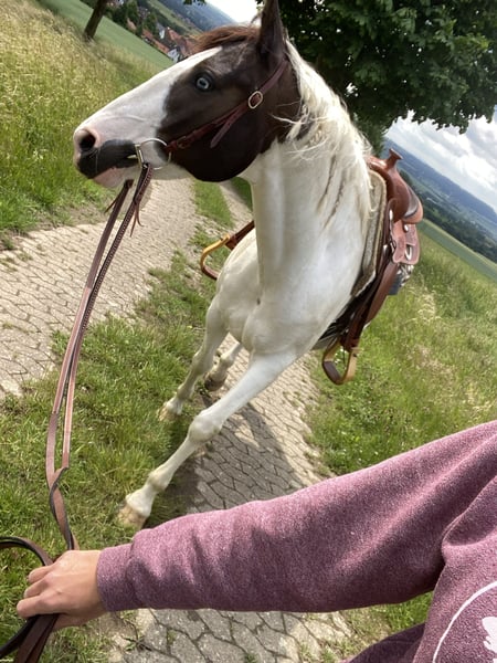 Dear all, I am looking for a new soulmate for my beloved mare Blue. She deserves a person she can trust, who will support and challenge her, and walk through life with her. This sale is not urgent and will only take place if everything fits perfectly. Blue is 7 years old and well-trained under saddle. She was in good Western training at the beginning of the year. She is a very sweet and reliable horse with a strong desire to please. In the field, she is also an absolute trustworthy partner when riding alone. However, she is not a beginner's horse (but which horse really is, except for a school horse?), as she needs honest and confident feedback from her rider. Since Blue has lived her entire life in an open stable and only feels truly comfortable there, I will only consider a placement if she can also move to an open stable (she is currently in a mixed herd and is extremely well-compatible). The saddle that is fitted for her can be purchased as well (additional equipment such as bridle/bits would also be included free of charge). I look forward to receiving sincere inquiries.