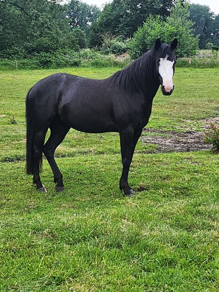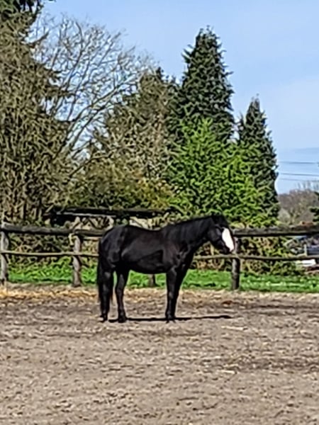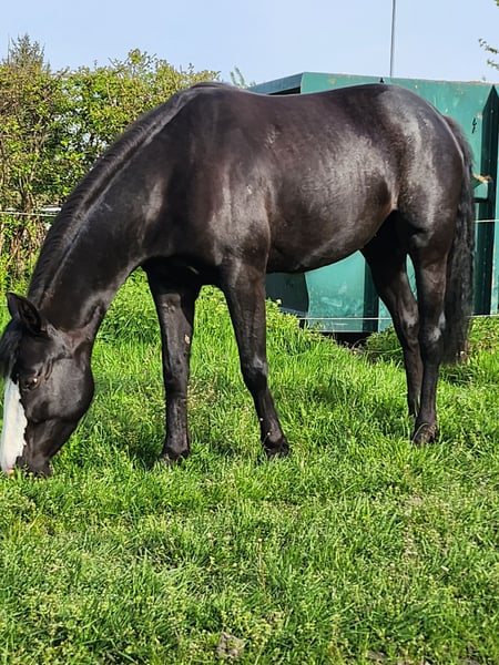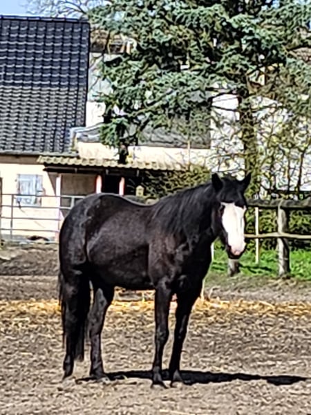 I am offering my nearly 7-year-old, approximately 1.56 m tall Paint cross mare for sale. A trade for a sleeping pill is also possible. I have owned her for 5 years. She was lightly backed at 4 years old, working in walk and trot without a bit. We have also cantered, but she is a bit too quick for me, so I stopped doing that. She is alert, friendly, not mean, but easily distracted. Since I only want to ride her leisurely in the field, we unfortunately still don’t quite match after 5 years. She is used to a loose box, mixed herd, and is middle-ranked. Vaccinated, regularly dewormed, and shod every 6 weeks. When she gets stressed, she sometimes flicks her head (a mild form of stress headshaking), but when she is calm and relaxed, she doesn’t show this behavior. However, I am unable to provide her with the calmness and security she needs in the terrain, which is why she is looking for a person who can offer that tranquility for a sensitive horse. Unfortunately, I am not that person.