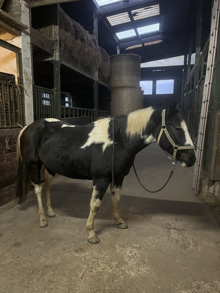 Wij zoeken een nieuw, passend thuis voor onze American Paint Horse merrie Great Paula, geboren op 19-06-2018. • 5-panel test n/n • Kleine AKU aanwezig • Tanden gekeurd tot december 2025 • Regelmatig gevaccineerd (griep/tetanus) • Loopt barhuf, afhankelijk van de ondergrond met hoefijzers in het terrein • Rijdt bitloos • Kent dierenarts, hoeforthopedist, laden, osteopaat Paula staat bij ons in een paddockbox. Ze is zeer robuust en is deze winter slechts enkele keren gedekt. Ze kent ook een box voor de nacht. Vorig jaar heeft ze drie maanden in training gestaan. Ze is bekend met buitenritten, werk in de bak en op de piste, evenals grondwerk, inclusief cavaletti en schriktraining. Met andere paarden is Paula zeer sociaal. We kunnen ons haar goed voorstellen in een grotere groep merries. In onze kleine groep met slechts één ruin wordt ze erg dominant. Bij haar vorige eigenaar heeft ze al een veulen gehad. Als ze alleen moet blijven, wordt ze onrustig. Toen vorig zomer een andere merrie bij ons kwam, was Paula duidelijk rustiger. Over het algemeen profiteert ze van regelmatige arbeid en een duidelijke routine. Ze is vriendelijk en knuffelig in de omgang. Kinderen kunnen haar probleemloos borstelen, invlechten, leiden en met haar op de grond werken. Paardrijden kan nog verder ontwikkeld worden. In een groep kunnen we haar ook goed voorstellen als trekpaard voor meerdaagse tochten, omdat ze graag door het terrein, door water, over boomstammen en diverse ondergronden gaat. Bij ons krijgt ze 24/7 hooi en in de zomer 24 uur per dag weiland, wat ze uitstekend verdraagt. Een voor haar aangepaste Deuber-zadel kan mee worden gekocht. Bij interesse horen we graag een korte berichtje met wat informatie over het toekomstige thuis, dan nemen wij contact met u op!