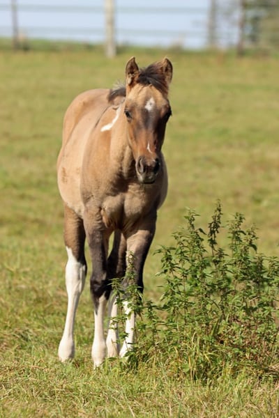 CHEYENNES VQ KAHLUA Bay Dun Tobiano APHA Stute. (Homozygot Tobiano und Black) Geboren: 25.05.2025 Engrösse ca 153 cm 7 Panel N/N EE Aa Dd TT