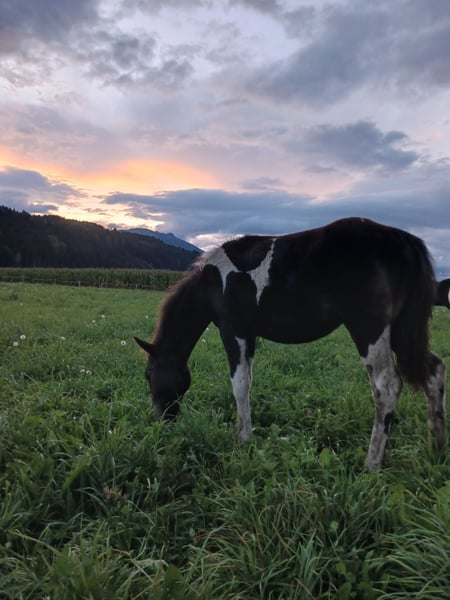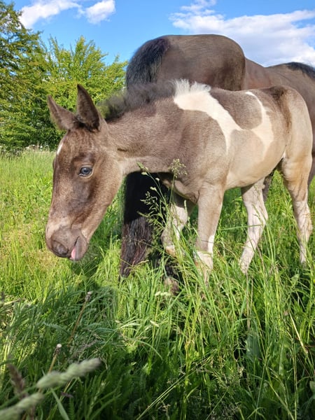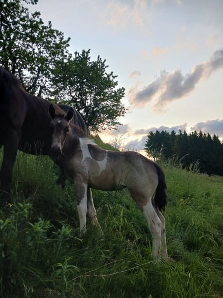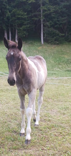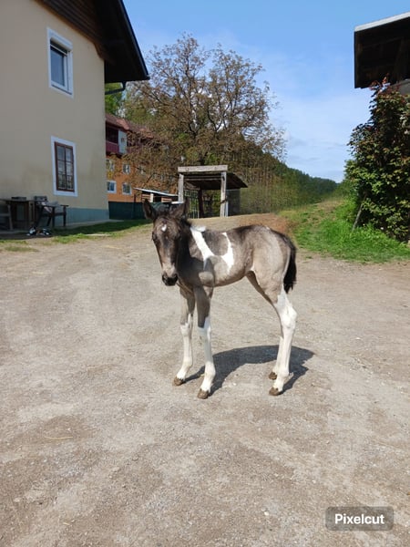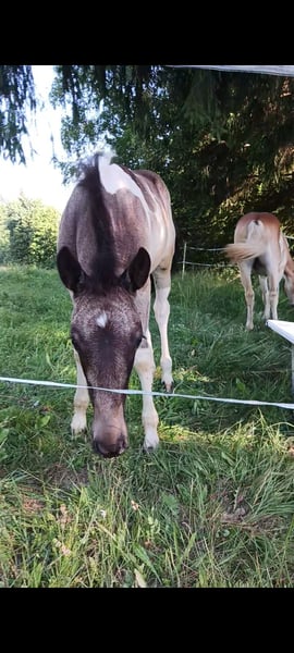 Mother: Noriker Father: American Paint Horse "Magic on Ice" Lenny knows the foal ABC. He is accustomed to being tied, loading into a trailer, having his hooves picked, being groomed and bathed, and is halter trained according to his age. She is a rather calm, very confident young mare in the special color "Smokey Black Tobiano." Upon moving to a new home, she will be vaccinated, dewormed, and of course microchipped. Breeding papers are still pending. If she does not receive them, the price will be adjusted accordingly. Videos available upon request. Available immediately. No delivery possible. Please contact via WhatsApp. HORSE FARM NORIKUM