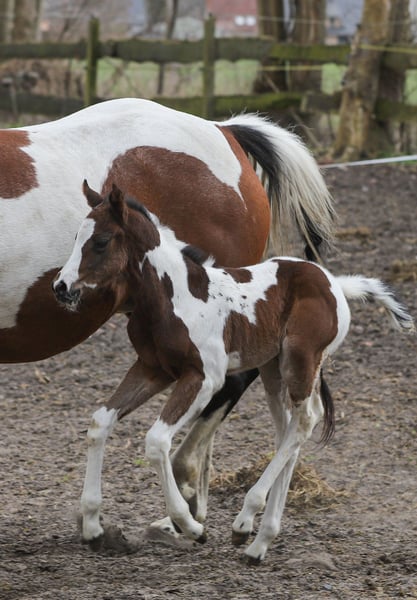 Unsere süsse Curly Sue sucht ab mitte/Ende Oktober ein schönes Zuhause. Curly ist am 04.04.2026 geboren, eine Paint Horse Mix Stute und wird ein Endmass von ca. 1,56m erreichen. Sie ist korrekt gebaut und sieht noch dazu Hammer mässig aus. Schon allein durch ihre Zeichnung und ihr süsser, neugieriger Blick.Wenn man schon in ihre wunderschönen Augen guckt, dann ist man schon total in sie verliebt Ihr Mama Springs Magic May ist eine Paint Horse Stute, ist 1,54m gross, hat einen tollen muskulösen Körperbau. Sie ist sehr cool vom Wesen her und sehr menschenbezogen. Ihr Papa Sherano Moon Flash ist ein 75% Paint Horse(der Rest Pinto), ist 1,57m groß, kräftig und eher der schlankere Typ. Sein Charakter ist ein Traum. Kennt keine Angst, was er auch all seinen Fohlen weiter gibt. Das umgängliche, furchtlose und liebe Wesen. Curly wird vom Typ her mittelkräftig bis kräftig werden. Also sehr stabil. Ich kann sie mir sehr gut in der Western Szene vorstellen. Oder einfach als Freizeitpartnerin. Curly wird bis zum Auszug gechipt sein, bekommt grünen Pass, kennt das Fohlen ABC und wird 2 mal entwurmt. Auf den letzten beiden Fotos ist ihr Papa zu sehen. Sie kann gerne Reserviert werden. Aber nur mit Anzahlung (Kaufvertrag, was schriftlich festgehalten wird). Bei weiterern Fragen einfach anrufen oder schreiben. 0174 2490523 Preis: 4900€ VB Standort: Insel Usedom