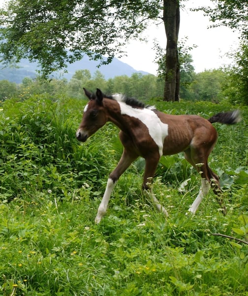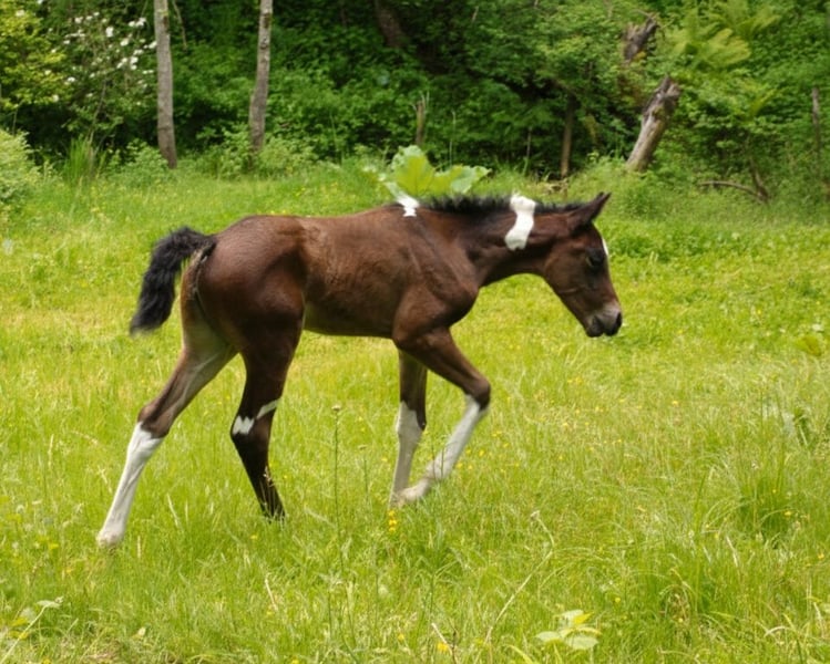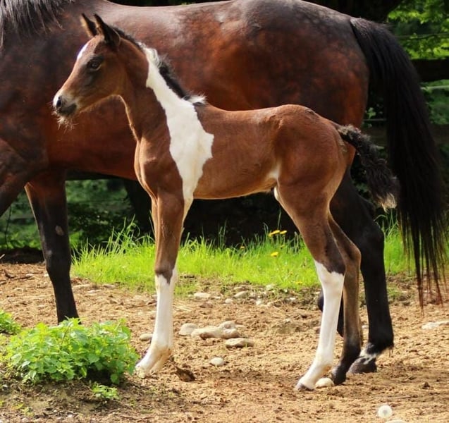 Mother: Noriker Father: American Paint Horse "Magic on Ice" Lenny knows the foal ABC. He is accustomed to being tied, loading into a trailer, having his hooves picked, being groomed and bathed, and is halter trained according to his age. She is a rather calm, very confident young mare in the special color "Smokey Black Tobiano." Upon moving to a new home, she will be vaccinated, dewormed, and of course microchipped. Breeding papers are still pending. If she does not receive them, the price will be adjusted accordingly. Videos available upon request. Available immediately. No delivery possible. Please contact via WhatsApp. HORSE FARM NORIKUM
