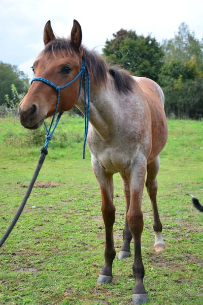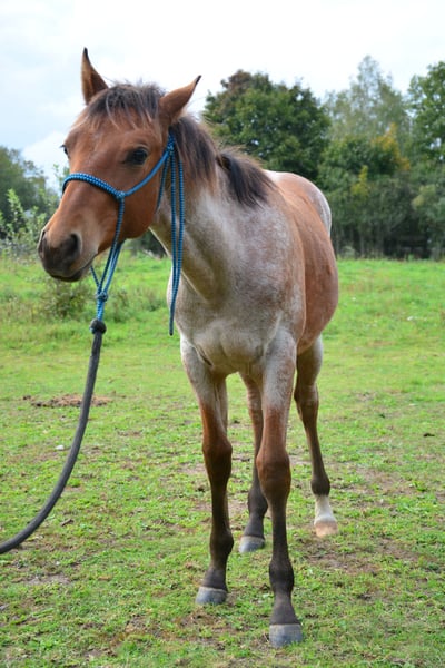 For sale: a beautiful ½ American Paint Horse stallion! Born in 2025, estimated height approximately 15.7 hh. His sire is a roan APH, and his dam is a roan ½ AQH. His buckskin roan coat gives him a truly striking appearance. Handled with a halter, he is foot-friendly, dewormed, vaccinated, and very calm in human interactions – he practically “leans” into people. Used to being alone, curious, well-behaved, he will make a brave and versatile riding horse. Well-trained, he can become an excellent all-round partner. He is kept in a free-range herd. If you are looking for a horse with an exceptional look and versatile potential, this colt is an excellent choice! Please contact me for more information and to arrange a viewing.