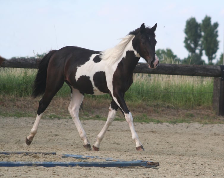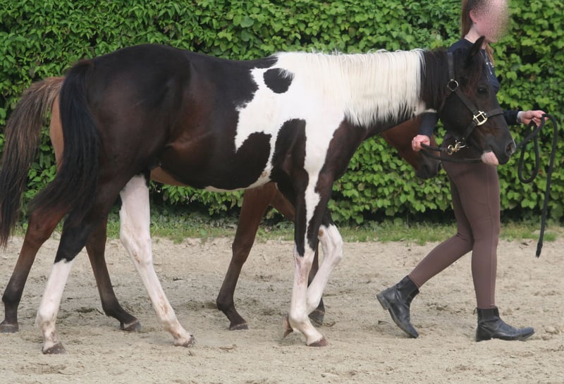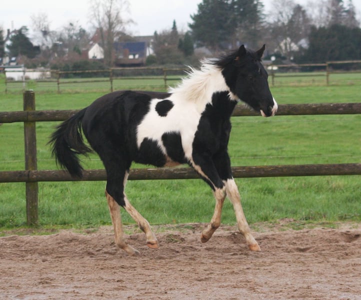 Hongre Paint Horse Tobiano en noir. Bien marqué avec deux yeux foncés. En raison de son caractère ouvert et de sa conformation athlétique avec une musculature équilibrée, il promet d'être un partenaire sportif et de loisir prometteur. Il grandit en troupeau. Avec un passeport PHCG et des papiers APHA. Test 5 Panel effectué par les parents. Le père est agréé par le PHCG. La mère a été primée comme jument gagnante lors de l'exposition de reproduction et est classée 5ème parmi les juments PHCG primées à l'échelle nationale en 2022. Dans le pedigree, on trouve des reproducteurs tels que Merada Chex, Doc Chex, Yellow Mount, Sugar Bars, Doc Quixote et Smart Chic O Lena. Pour toute demande, veuillez appeler.