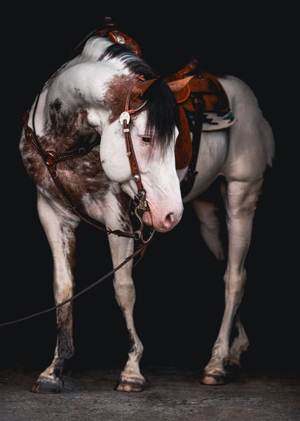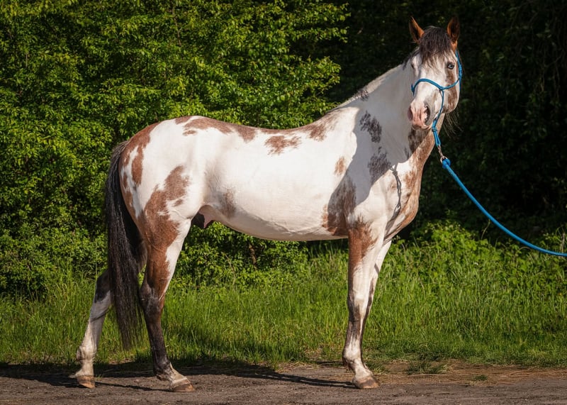 Amerykański koń rasy Paint, ogier w kolorze bay overo