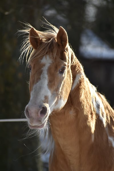 Amerykański koń rasy Paint Horse, ogier w kolorze złoty szampan