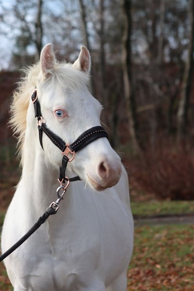 FHB CASH WIMPYS GUN "Ghost" Palomino (aber das palomino is nicht sichtbar weil ihr maximum weiss ist so seine weisse scheckung deckt sein ganzen Körper ab. Fast ein echter Einhorn ohne Horn ;) ) Splash und Tobiano (frame overo wird noch nachgetestet) Geboren: 06.05.2025 Endgrösse ca 150 cm ee Aa CRcr Tt SW2/N W20/N