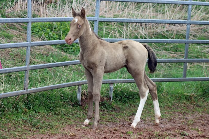 CHEYENNES VUDU CASH Classic Champagne Tobiano APHA stallion. Homozygous Champagne and Black Born: May 14, 2025 Expected height approx. 153 cm 7 Panel N/N EE aa CHCH Tt