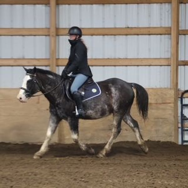 "AVAILABLE ON ONLINE HORSE AUCTION AT www DOT MagicHorseAuction DOT com BIDDING OPEN NOW thru TUESDAY | MARCH 3RD! BUY IT NOW AVAILABLE! *Final price will be determined on auction site* CONSIGNOR CONTACT INFO:ELLESSEE SCHWARTZ #248-390-6831 LOCATION:Howell, MI" "Meet Stetson! This 7 year old 14.1hh big bodied absolutely amazing blue roan and white paint pony has all the color and class in the world! Stetson is the sweetest guy you will meet. He will walk, trot and canter with ease, he has floaty and flat kneed gaits. He knows his leads and can canter from the halt. He has a lot of training in the arena and is overall more whoa than go making him a favorite for the kids at the farm. He is working on his liberty work and will follow you around like a puppy dog and is learning to lay down on command. He loves the attention that comes with liberty training and soaks up every minute of it. He shows up with a can do attitude day in and day out. On the trails he's as steady as they come, woods, bikes, wildlife big and small, deep water or small streams are no issue. He's been on several moonlight rides and is always up for an adventure. He's will take the lead or fall behind and follow along. He is not bothered if you ride out alone or in a group. He has been use to pasture rope and move cattle around the farm, when you take him to work he give his all and is one the timid riders and kids can depend on to get the job done, as he is as handy and sensible as they come. Stetson is also well broke to drive! He has been on the main roads and is traffic safe. You can also hook him up to go sledding. Stetson is an amazing all around handy broke pony who comes wrapped in the most beautiful color around! Stetson lives in Howell MI 48855! Call or text Ellesse at 2483906831! "
