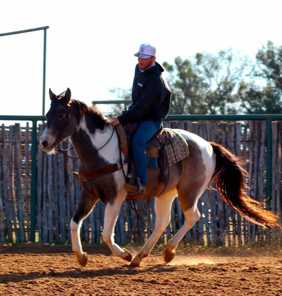 ONLINE AUCTION Place your bids at www.PlatinumEquineAuction.com Starting Bid $3500 Auction ends March 23rd, 2025 Need a new saddle? Check out White Rock Saddles on our website or Facebook! If you are looking for a good, solid, affordable gelding to add to your barn check out this one! Raja is a very solid grade paint gelding and stands at 15.1 hands tall and is 9 years old! Raja is built to last and has all the ability in the world. He is a blast to ride and has the smoothest gates ever! This guy will go absolutely anywhere you point him. Raja has been ridden outside on the ranch most of his life making him super fun and safe out on trail. Very easy to control, super fun ride! He has been around wildlife, blowing tarps, heavy equipment, barking dogs, and lots of other crazy! He loves getting attention, to be groomed and he loves his baths. This gelding loads/unloads in the trailer with ease and will stand tied up all day like a gentleman. This gelding is a pleasure to be around making him very desirable. He’s gonna turn heads and he will keep you safe! Located in Lipan Texas We can help arrange shipping anywhere in the US, Hawaii, Canada Please call or text Makenna Hartzell 817-659-3778 for more information. ONLINE AUCTION Place your bids at www.PlatinumEquineAuction.com Starting Bid $3500 Auction ends March 23rd, 2025 Need a new saddle? Check out White Rock Saddles on our website or Facebook!