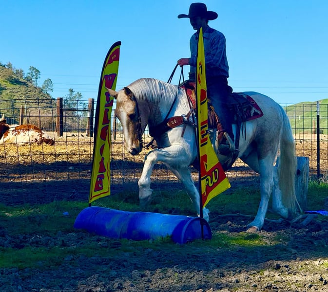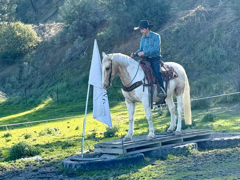 ONLINE AUCTION Place your bids at www.PlatinumEquineAuction.com Starting Bid $3500 Auction ends February 1st, 2026 Need a new saddle? Check out White Rock Saddles on our website or Facebook 11-Year-Old Palomino & White Gelding • 14.3 Hands Some horses come with a long list of rules. Clint did not get that memo. He’s the kind that makes riding feel easy, relaxed, and enjoyable—no negotiations required. Swing a leg over, point him where you’d like to go, and he’s happy to oblige. Clint has a quiet, willing demeanor and a good sense about him. He’s the type that keeps things calm and doesn’t feel the need to add drama to your ride. If you’re looking for a horse that prefers doing his job over making a scene, Clint fits the bill. In the arena, Clint keeps things smooth and uncomplicated. He walks, trots, and lopes with an easy rhythm, picks up his leads, stops off your seat, and backs willingly. He neck reins nicely, stays light in the bridle, and doesn’t require micromanaging to ride well. Outside the arena is where Clint really earns his keep. He’s sure-footed on the trail, handles hills, brush, and water crossings, and approaches new scenery like he’s seen it before (even when he hasn’t). He’s been around flags, tarps, balls, bridges, pool noodles, traffic, dogs, and farm equipment and treats them all like background noise. He’s also been around cattle and has been roping the lead steer without any objections. On the ground, Clint is just as agreeable. He tacks up quietly, stands to be groomed, loads and hauls well, and is great for the farrier. He does well in a stall or pasture and rides out alone or in a group without fuss. If you’re searching for a good-looking gelding that keeps life simple and rides the way a horse should, Clint checks a lot of boxes—and probably a few you didn’t know you had. Clint is a fun and playful gelding ready to be your new best friend. Dina – Longhorn Ranch Paicines, CA 831-537-1915 Nationwide shipping available with reputable haulers ONLINE AUCTION Place your bids at www.PlatinumEquineAuction.com Starting Bid $3500 Auction ends February 1st, 2026 Need a new saddle? Check out White Rock Saddles on our website or Facebook