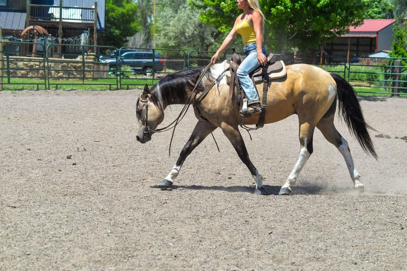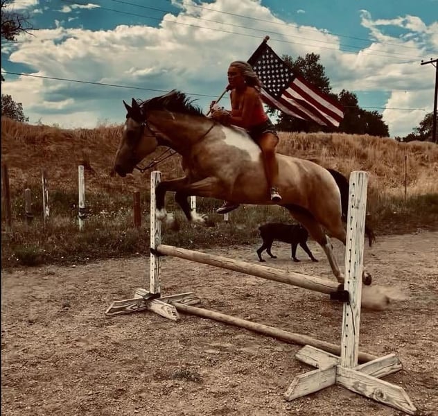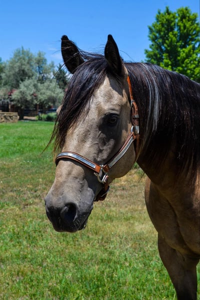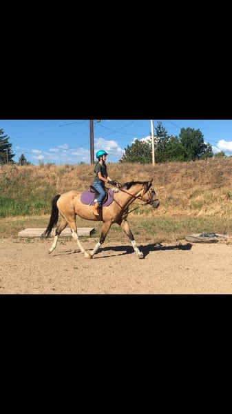 ONLINE AUCTION Place your bids at www.PlatinumEquineAuction.com Starting Bid $3500 Auction ends November 17th, 2024 Need a new saddle? Check out White Rock Saddles on our website or Facebook! IMA SMOKEY PEP KID aka Rojo. Rojo is the real deal! Standing right under 16 hands, as stocky as they come and extremely athletic (and stunning) this horse can go absolutely any direction you want to take him. Rojo has been in our lesson program since he was started as a two-year-old and has been on a million trails in and out of state with all levels of riders, he will take care of a young kid riding right through town but can also take on rough mountain terrain with lots of rugged territory. He is 100% traffic safe, no spook or funny business, fine with dogs, strollers,crowds you name it. We have even taken him downtown to dinner before! Rojo is a finished 2D/3/D barrel horse as well, Though he isn’t currently legged up, he has a beautiful pattern and would be easy to get back into it. Rojo l has a lot of training in western pleasure and the reining world, He has a slow jog and lope, clean pivots, side passes, flying lead changes, rollbacks etc. Rojo has shown in reining, western pleasure, and ranch versatility as well as competing in barrel races, ranch sorts and a couple competitive trail competitions. (also did 2 years of trick riding and taught vaulting on him) On top of that, Rojo has dressage and jumping training. He has jumped 2’6 consistently and has gone up to 3’6″ with plenty of scope and room to go higher. Rojo will cross anything you put in front of him and will mold to whatever level and age rider he is paired with. He has also had loads of liberty work, will do circles at liberty in and out of the arena or do a whole showmanship pattern without a halter! He will ride bridle- less as well with just a neck rope and can still execute beautiful stops, spins, and rollbacks. He is not herd bound or barn sour, goes out alone or in a group and gets along with mares or geldings. He’s always been healthy and sound with no injuries or health issues as well as barefoot. Rojo has been roped off of at the ranch, dragged cattle, is quick in the sorting pen and though we haven’t done much of it, would excel in the cutting pen with his extreme athleticism Rojo’s sire was VERY successful in the show world and Rojo would excel going in that direction, or he has the perfect brain to be a reliable mount for the whole family, or go run barrels on him! He is tall, flashy, intelligent, and so much fun to be around! He is one of the goofiest horses at the barn and gets along with everyone that sees him. Come meet him and see for yourself. We have no doubt you will fall in love! Located in Fort Collins, CO. Contact Thea with Dynamite Horses 970-632-3644 with any questions. ONLINE AUCTION Place your bids at www.PlatinumEquineAuction.com Starting Bid $3500 Auction ends November 17th, 2024 Need a new saddle? Check out White Rock Saddles on our website or Facebook!