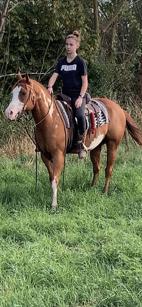 Voici une proposition d'annonce pour votre cheval : --- **American Paint Horse, Hongre, né en 2015** Ce magnifique American Paint Horse, né en 2015, est un hongre au tempérament calme et fiable, idéal pour les loisirs. Son allure élégante et sa robe Overo multicolore en font un cheval particulièrement remarquable et expressif. Très bien monté et bien dans sa tête, il se montre agréable à l’utilisation, tant en balade qu’en manège. Son excellent mental et sa souplesse en font un compagnon parfait pour les cavaliers de tous niveaux, que ce soit pour la promenade, le travail en carrière ou les activités de loisir. Sa robe colorée, combinée à ses qualités équestres, en fait un cheval qui ne passe pas inaperçu. Facile à vivre et doté d’un bon esprit, il saura séduire un cavalier recherchant un partenaire fiable et agréable pour profiter pleinement de ses moments en selle.