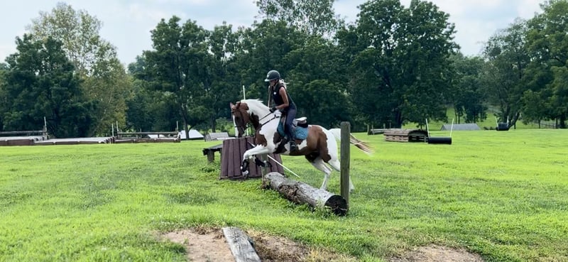 "AVAILABLE ON ONLINE HORSE AUCTION AT www DOT MagicHorseAuction DOT com BIDDING OPEN NOW thru TUESDAY | AUGUST 19TH! - BUY IT NOW AVAILABLE! *Final price will be determined on auction site* CONSIGNOR CONTACT INFO: Juli Hubik 717-875-2061 LOCATION: Gap, PA Check out this stunning boy! ✨ Django ✨ is an 11-year-old, 15.3–16hh Paint gelding. This guy has all the right markings, and he’s put together very nicely. He rides English, Western, he’s a trail master, and he drives! He’s sweet and respectful on the ground, and he doesn’t have a mean bone in his body! On the trail, Django always has a happy-go-lucky attitude. His ears are always perked forward! He has a forward way of thinking; however, he’s not one to run away with you. He’s a brave one and will gladly lead the group—through anything! He’ll go through water, bridges, ditches, mountains, and tunnels. He’s seen deer, hikers, dogs, bicycles, flags, traffic, and just about everything else you can think of while out on the trail! He’s sensible, sure-footed, and steady. He has lots of miles under his belt and has primarily done trail work as his job! He loves it and is never the type of horse to try to get out of work. He would make an ideal candidate for hunter paces, fox hunting, and paper chases! In the ring, Django has been learning a lot with us! He’s smart as a whip and seems to learn more with every ride. He’s always willing to learn and happy to work. He hasn’t had a lot of experience in the ring, but he has a solid WTC in both directions. He moves off leg, responsive to leg to side pass, and spin. He knows the difference between using leg to move forward- versus off of it. He’s been smoothing out his transitions, his trot is adjustable, and he’s so fun to ride! We could see him excelling in dressage with his naturally fancy way of moving, forward-thinking attitude, and willingness to learn. Django has also been lightly started over jumps and could definitely progress in that direction. He’s been cross-country schooling and was honest and straightforward. With more muscle building and direction, we have no doubt he’ll be an absolute star! He’s not suited for complete beginners at this time—solely because of his forward, responsive nature. However, for a confident junior or adult amateur who likes a self-motivated horse, he would be a perfect fit! He’s not dangerous or naughty in any way, shape, or form. In the barn, Django is always sweet and easy to handle. The kids can lead him, groom him, braid his mane, and pick his feet! He’s such a gem—truly a kind-hearted horse who can continue in any direction! Django is UTD on Shots, Coggins, Dentist, Deworming, and Farrier. He is sound and healthy with zero health problems or concerns. He has one old scar that does not affect him. Call or text Juli for more info- 717-875-2061