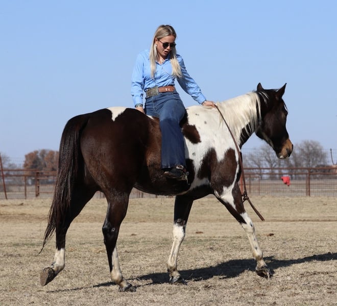💎 𝐓𝐇𝐄 𝓓𝓲𝓪𝓶𝓸𝓷𝓭 𝐒𝐇𝐎𝐖𝐂𝐀𝐒𝐄 💎 Happening now thru MONDAY | FEBRUARY 23rd - Available EXCLUSIVELY on HorseBid's website! For more details and to register visit: www.Horsebid.com CONSIGNOR CONTACT: AM HORSE CO 817-659-3778 LOCATION: Mineral Wells, TX BREED: Paint REGISTERED: Yes REGISTERED NAME: MACARIO GOLD COLOR: Brown and his white HEIGHT: 15.1 AGE: 12 GENDER: Gelding 💛 MACARIO GOLD💛 see if he checks these few boxes for you?⬇️ 🌟An absolutely certified GENTLE, EASY AND BEAUTIFUL for any age ⭐️A horse that is handy enough but calm enough to do any job or anything you ask of him? ⭐️A horse that is perfect for someone wanting to learn or just someone wanting to ride on the weekends? 🌟The perfect gelding to ride down the trails all day long without any trouble whatsoever? ⭐️A great lesson horse? Or Drill team? Maybe a sorter? To go ranch on? Tecova isnt just a cool paint but will have you look for years to find one like this! A great pedigree come with this guy, Corona Cartel, Royal Quick Dash and more all right there on his papers! Tecova is a perfect 12 years old, 15.1 hands tall, and weighs 1200lbs! A good paint horse is hard to come by, don’t miss out on him! He will stand for absolutely anyone to get on, no matter what you’re using to get up there. He is put together correctly and is calm as you could want and a true gentleman and has a patient temperament. He is one of those all around geldings that are forgiving enough for those complete beginner riders but he is also fun for an advanced! You can’t go wrong with him for your family! Tecova is very easy, he walks, trots, lopes and side passes very well! He’s extremely smooth to ride and has a beautiful rocking chair lope each direction! We can’t say enough good things about him, and believe it or not, there is NOT one bad thing we could say. He is the very best first horse and the perfect addition to your family. I could talk about him all day long, or you could come see him for yourself! We are located in ♦️Mineral Wells Texas♦️but have reputable haulers that go all over the country, including Hawaii and Canada. Give me a call or text and I’d be happy to answer any questions! 817-659-3778