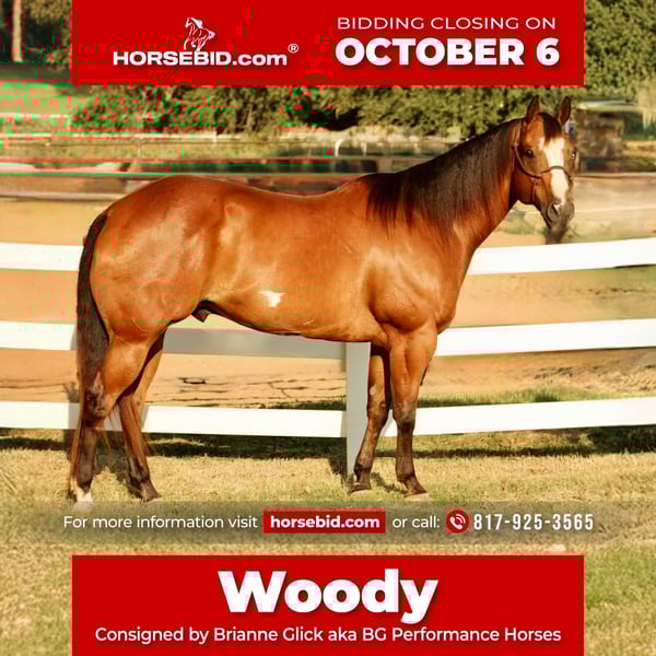 🍂 𝓐𝓾𝓽𝓾𝓶𝓷 𝑨𝑳𝑳 𝑺𝑻𝑨𝑹 𝑳𝑰𝑵𝑬𝑼𝑷 🍂 Happening now thru MONDAY | OCTOBER 6th - Available EXCLUSIVELY on HorseBid's website! For more details and to register visit: www.Horsebid.com CONSIGNOR CONTACT: Brianne Glick aka BG Performance Horses 817-925-3565 LOCATION: Weatherford, TX BREED: Double Reg. with APHA and Pinto Assoc. REGISTERED: Yes REGISTERED NAME: Mr Finest Touch COLOR: Bay Overo HEIGHT: 16.2 AGE: 11 GENDER: Gelding If Woody could talk he would say...Did we just become best friends? Because that's what Woody wants to be. Your best friend. Woody will Catch everyone's eye with his Gorgeous Build, one Brown eye and one Blue eye, Dashing Good looks and amazing personality! Chromed out & Unique! Woody was a former Halter Horse Champion, 2020 Unanimous Open & AM PtHA Halter World Champion Aged Gelding. Kind and willing in every way! Wonderful ground manners, ties great, hauls great, stands for the farrier great, bathes great, saddles great, bridles great, stands for the mounting block great, and is an EASY going gelding. Did I mention wonderful ground manners and a PLEASURE to be around!! Comes running from the paddock to be haltered! Woody gets along with all horses!!! Very gentle and loves everyone. He has a nice handle on him and has been rode consistently the last 6 months. It doesn't matter how long he sits.. he is the SAME guy every time. He is also a beautiful mover! Smooth and fun to ride. Always been sound. We have trail rode a lot on him; he watches his feet and really enjoys moving out on the trail. I have also carried the American Flag with him and he enjoys that too. I think someone could do mounted shooting, parades, english, western, trails or whatever you wanted... nothing bothers him. He takes everything in stride! Woody is SO special and his personality is second to NONE!! He is voice command trained on the ground and also listens when you're on him besides your legs and reins. He is always waiting on you to see what ya'll want to do next! He is TRULY 1 in a Million Kind of Guy... Don't let him get by!! Come see Woody, call with questions or try him! PPE's are welcomed at buyer's expense! CALL Brianne Glick 817-925-3565