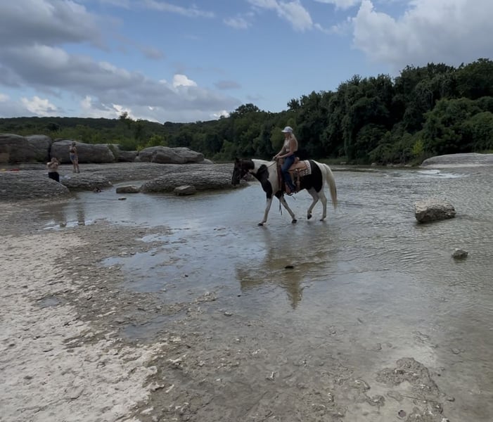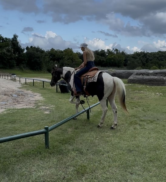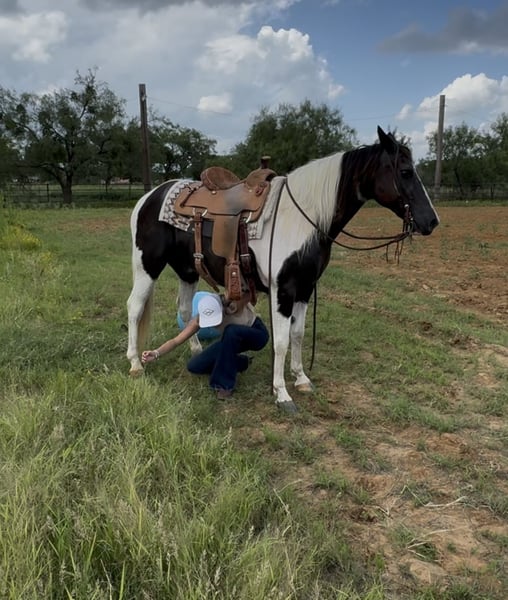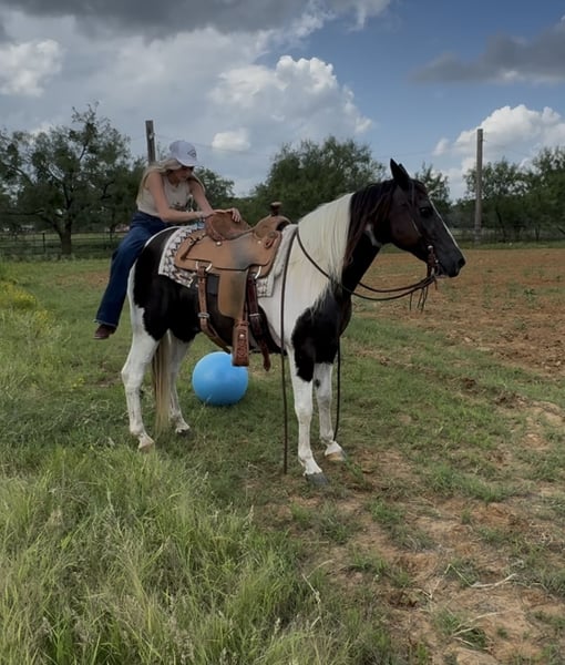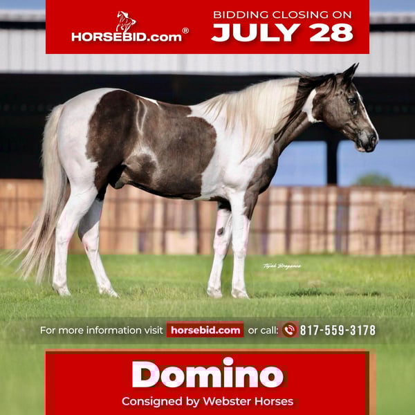 ⚔️ The HORSEMAN's Select ⚔️ Happening now thru MONDAY | JULY 28th - Available EXCLUSIVELY on HorseBid's website! For more details and to register visit: www.Horsebid.com CONSIGNOR CONTACT: Webster Horses 817-559-3178 LOCATION: Springtown, TX BREED: Paint REGISTERED: No COLOR: Black and White Tobiano HEIGHT: 14.2 AGE: 13 GENDER: Gelding Domino is a beautiful black and white paint gelding standing 14.2hh and 13yo. Domino is built stout and has great bones and feet. He is 100% sound and sane. Domino is the perfect family gelding if you’re looking for that safe gentle gelding for everyone. Domino has seen all the sights. Ridden in town, by traffic, ridden in the river, crosses any obstacle/log, and is very easy to do all of this one handed. Domino will w/t/c both ways and will neck rein around. He is tried and true as a trail gelding. He is extremely easy. No maintenance, stands to be saddled, groomed, bathed. Loads in the trailer great and backs out. He stands tied quietly, and is a been there done that type of guy. Domino will ride out alone or with a buddy. He is exactly as you see in the video. He is also good with other horses turned out in a pasture. Very easy going gelding. Domino is sound and healthy, he is UTD on teeth floating, deworming, coggins, health, and shoeing. If you have any questions at all text Olivia at 817-559-3178. Domino is located in Springtown TX. Shipping can be arranged anywhere.
