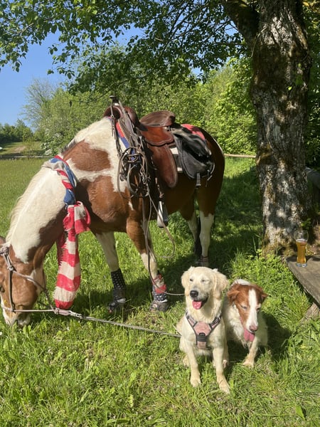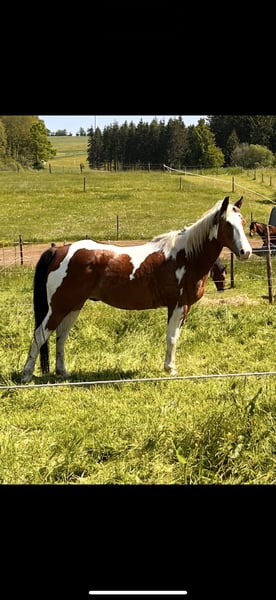Paint Horse Gelding – Perfect for Leisure Riding! Up for sale is a beautiful Paint Horse gelding, born in 2012. Kenny impresses with his stunning Tovero coloring in bay and his friendly personality. Standing at 15.0 hh, he is ideal for recreational riding and offers plenty of enjoyment for riders of all experience levels. The gelding is healthy, well-trained, and loves being out in nature. He is reliable, kid-friendly, calm in handling, and suitable for relaxed rides as well as light Western exercises. He is also very sound and easy to load. If interested or for further questions, please feel free to contact me. A viewing and trial ride can be arranged by appointment.