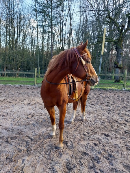 Paint Horse Wallach sucht neues Zuhause. Wir suchen für unseren 16 jährigen Paint Horse Wallach ein neues Zuhause. Splash hat eine solide Westerngrundausbildung genossen. Er ist fein zu reiten, testet jedoch zeitweise aus, so dass er einen konsequenten, aber gefühlvollen Reiter benötigt. Aufgrund von Zeitmangel wurde er in letzter Zeit nur wenig gearbeitet und muss daher wieder antrainiert werden. Splash ist ein rangniedriger, sehr verspielter Wallach. Er lässt sich problemlos in die Herde integrieren und im täglichen Umgang ist er menschenbezogem und leicht zu händeln. In der Bodenarbeit arbeitet er willig mit. Jedoch sollte man auch vom Boden aus konsequent sein. Im Gelände ist er in Begleitung eines zweiten Pferdes sehr brav und rittig. Er ist insgesamt eher ein gemütlicher Typ mit sehr bequemen Gängen. Er ist jedoch auch ein Pferd, dass sich schnell stark an andere Pferde bindet. Sowohl beim Tierarzt als auch beim Schmied ist er sehr brav. Verladen lässt er sich ebenfalls gut, gefahren ist er jedoch nur mit einem zweiten Pferd. Er ist an alle möglichen Lärmquellen wie Traktor, Kettensäge etc. gewohnt und sehr entspannt und nicht guckig. Wir geben ihn schweren Herzens aufgrund familiärer Veränderungen und Zeitmangel ab. Er lebt bei uns im Offenstall/ Weide und kennt keine Boxenhaltung. Daher geben wir Ihnen auch nur in eine ähnliche Haltungsform ab. Wir wünschen uns für ihn einen liebevollen Menschen der Lust auf ein interessantes, nicht abgestumpftes Pferd hat. Es gilt definitiv Platz vor Preis.
