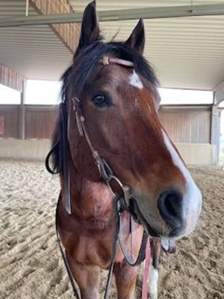 Ich suche ein liebevolles Zuhause für meinen 17-jährigen Wallach Manolo Maximum. Aus zeitlichen Gründen kann ich das Training nach einer Reitpause nicht so fortführen, wie er es aufgrund moderaten Kissing Spines und Arthrose benötigt (er läuft komplett ohne Medikamente). Manolo kann mit dem richtigen Aufbautraining dann wieder mit kleineren Einschränkungen geritten werden (ausschließlich Freizeitbereich; kein Gewichtsträger). Für ihn steht daher eine regelmäßige, gesunderhaltende und gymnastizierende Arbeit im Vordergrund. Mit ihm wurde an der Longe (z.B. Equikinetic) und Doppellonge gearbeitet. Außerdem hat Manolo große Freude an Bodenarbeit (Horsemanship), Freiarbeit und Zirkuslektionen. Hier ist er hochmotiviert und lernt schnell. Im Handling ist er brav. Er wurde regelmäßig geimpft, entwurmt und osteopathisch behandelt sowie dem Zahnarzt vorgestellt. Ich wünsche mir jemanden, der das Vertrauen zu ihm aufbaut und ihm viel Zuwendung schenkt. Jemanden, der ihn vielseitig beschäftigt, mit Gefühl und Ruhe arbeitet und über den Rücken reiten kann. Für Anfänger ist er daher nicht geeignet. Gesucht wird ein Platz mit ausreichend Bewegung und guter Haltung (keine reine Boxenhaltung). Gomeier Sattel und Trense können separat verkauft werden. Bei ernsthaftem Interesse ist auch eine Pflegebeteiligung möglich, um ihn so besser kennenzulernen. Platz vor Preis! Keine Händler!